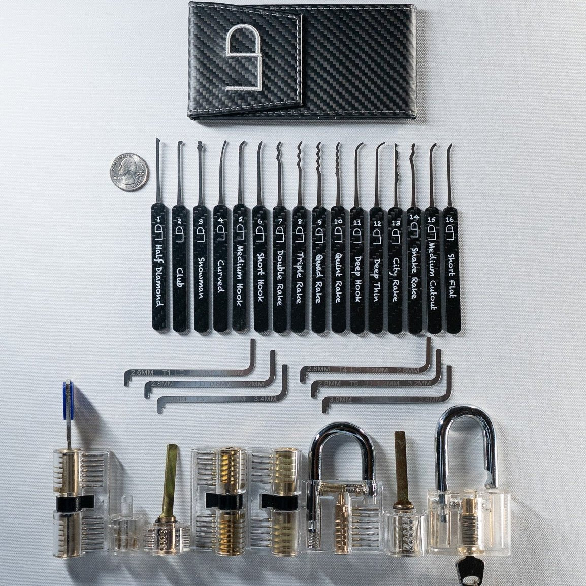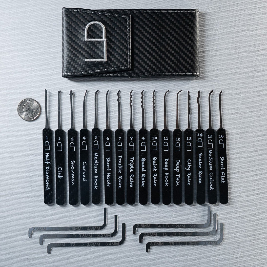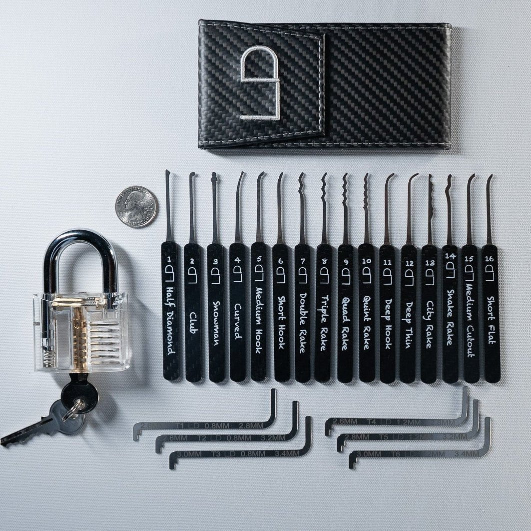Each set comes with 10 lockpick profiles and multiple tension wrenches. We provide clear instructions in the video series to show what each tool is used for and how to get started.