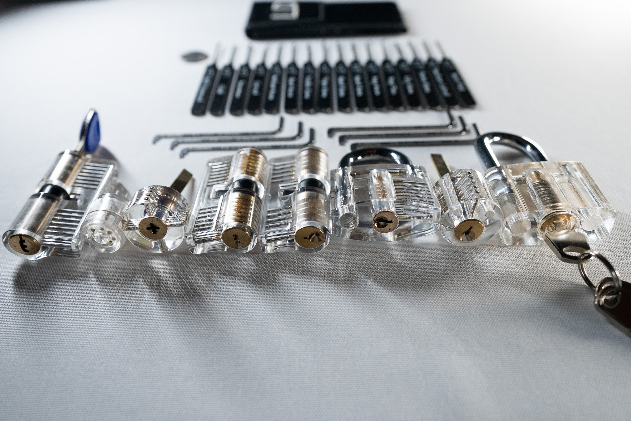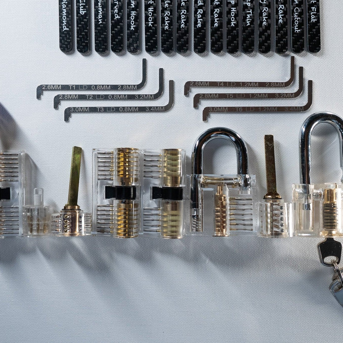 We highly recommend starting with a clear or beginner-level practice lock. It helps build muscle memory and technique before moving on to real locks.