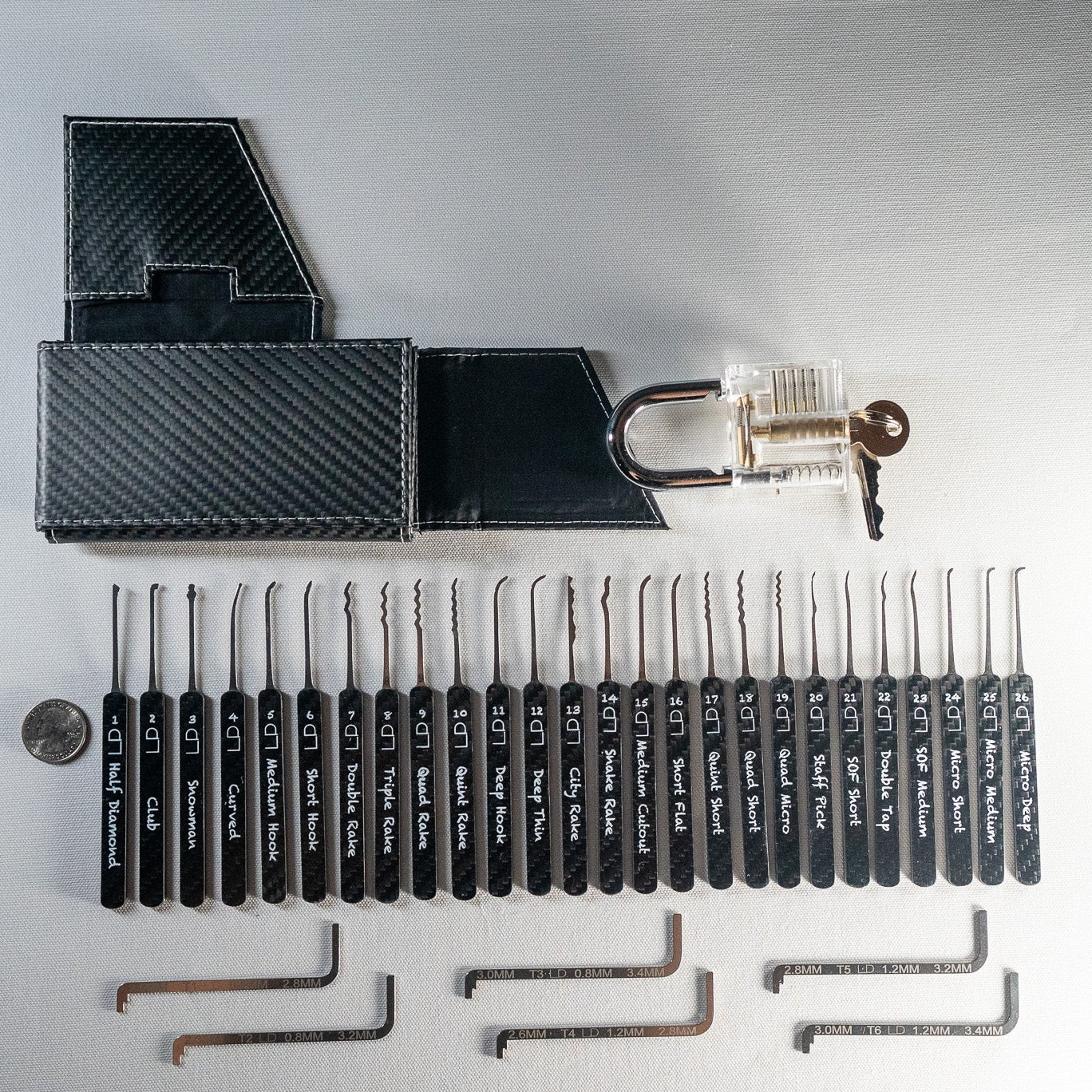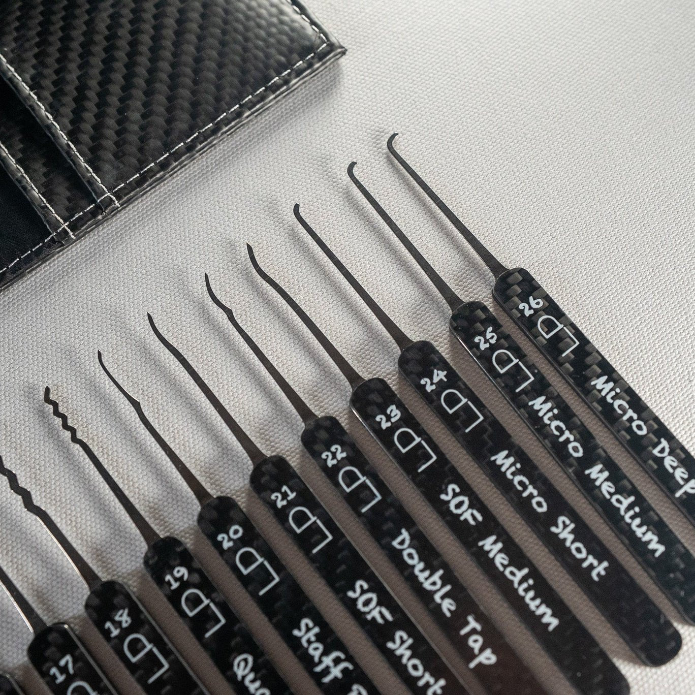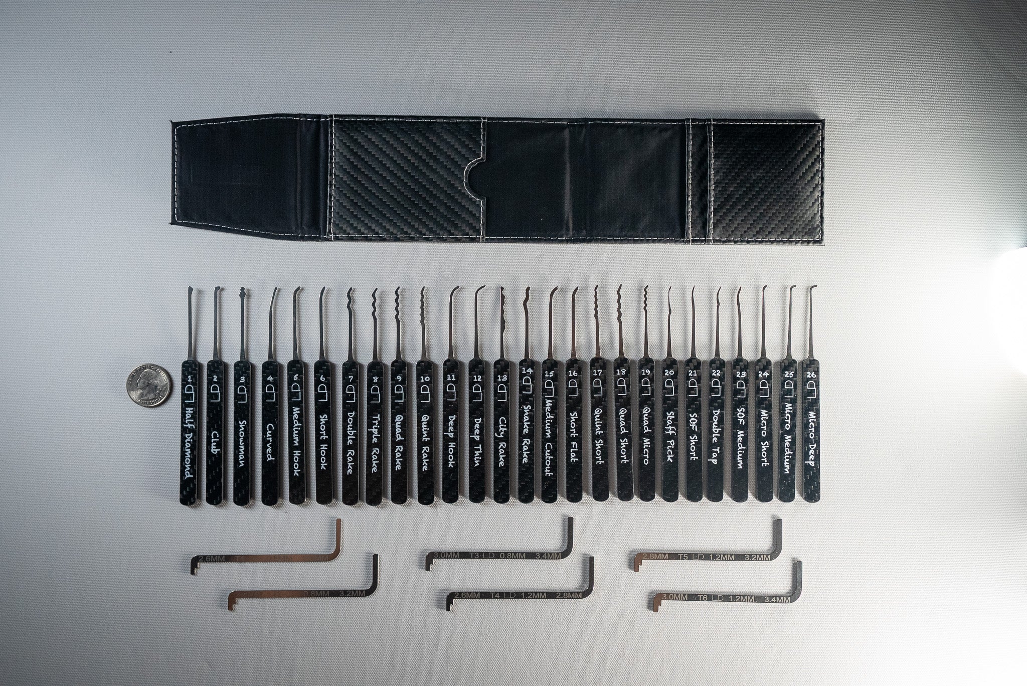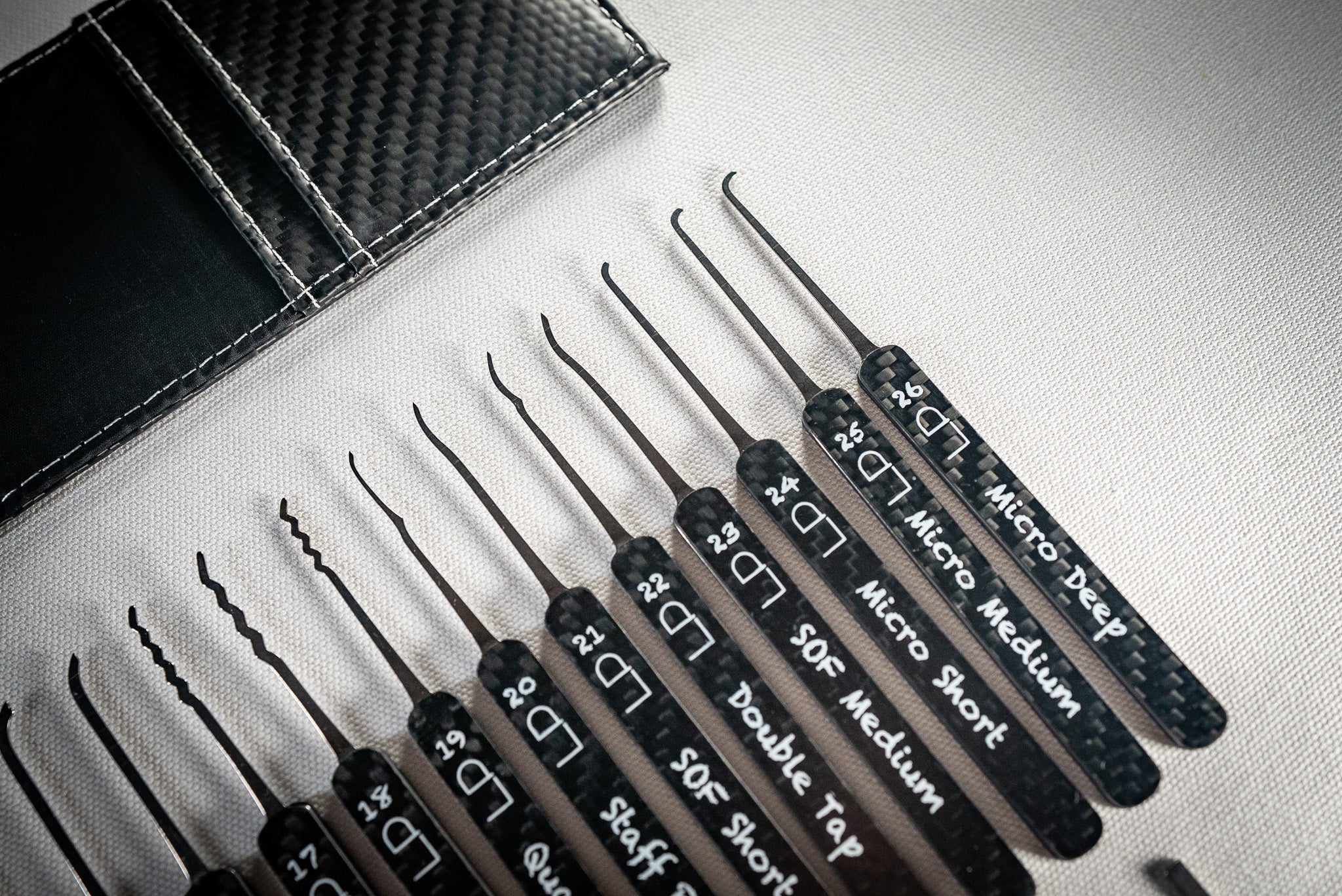 This is our newly updated Carbon Fiber Special Gen 2 set with the updated case and elite series tension wrenches. Make sure to check the options to get insure the right purchase.