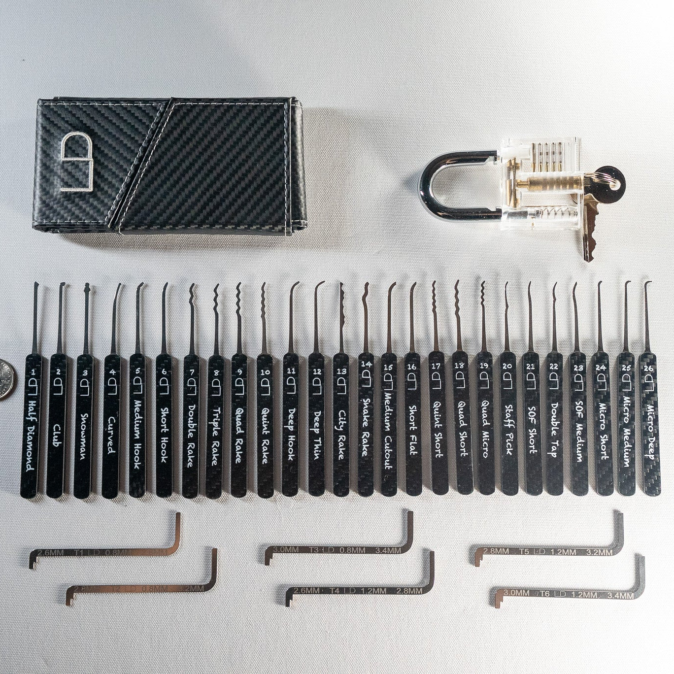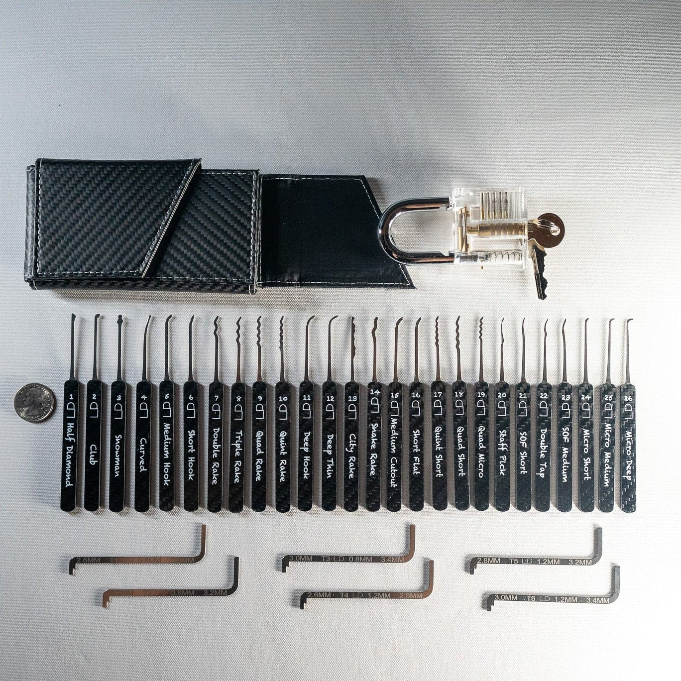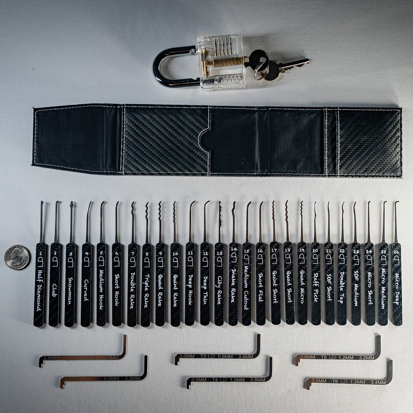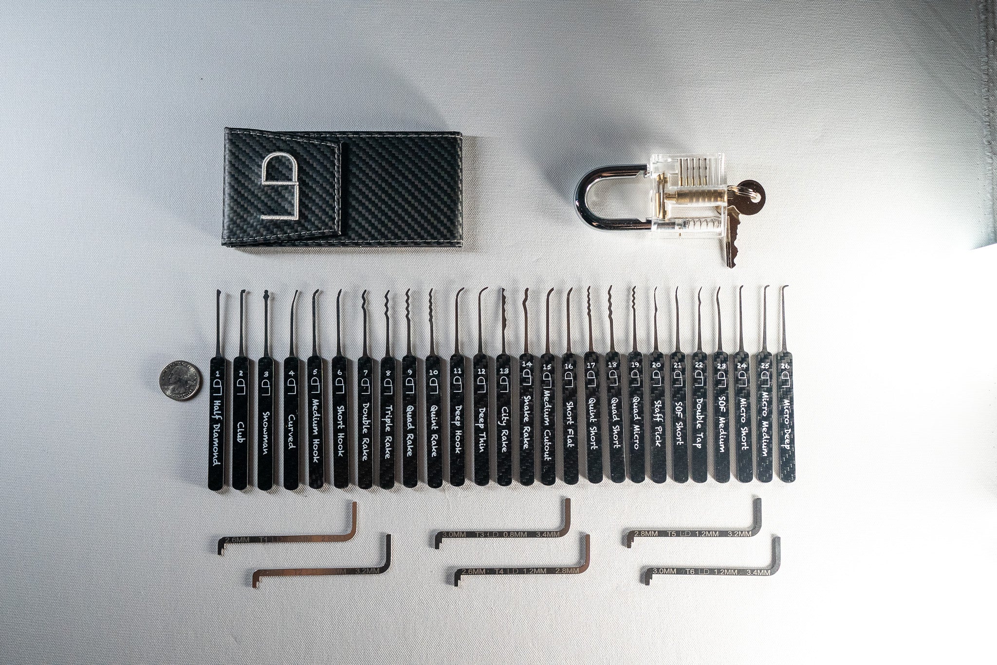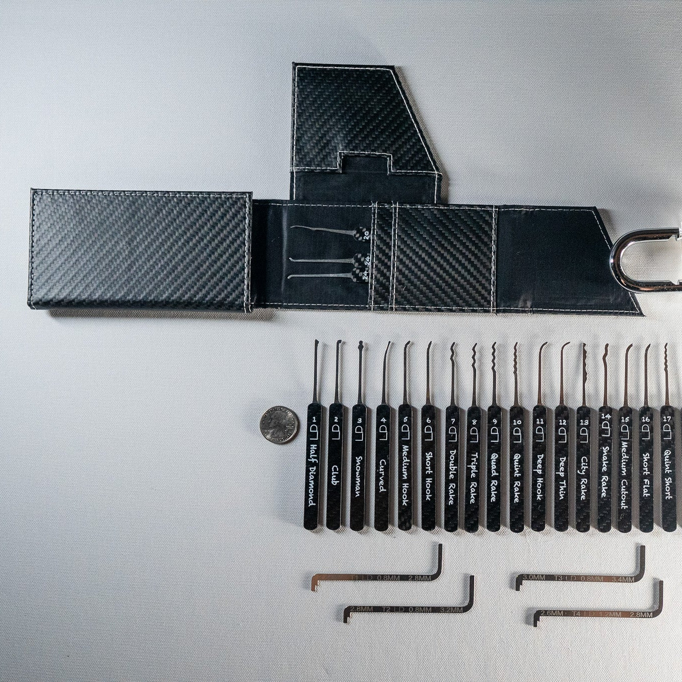 This is our newly updated Carbon Fiber Special Gen 2 set with the updated case and elite series tension wrenches. Make sure to check the options to get insure the right purchase.
