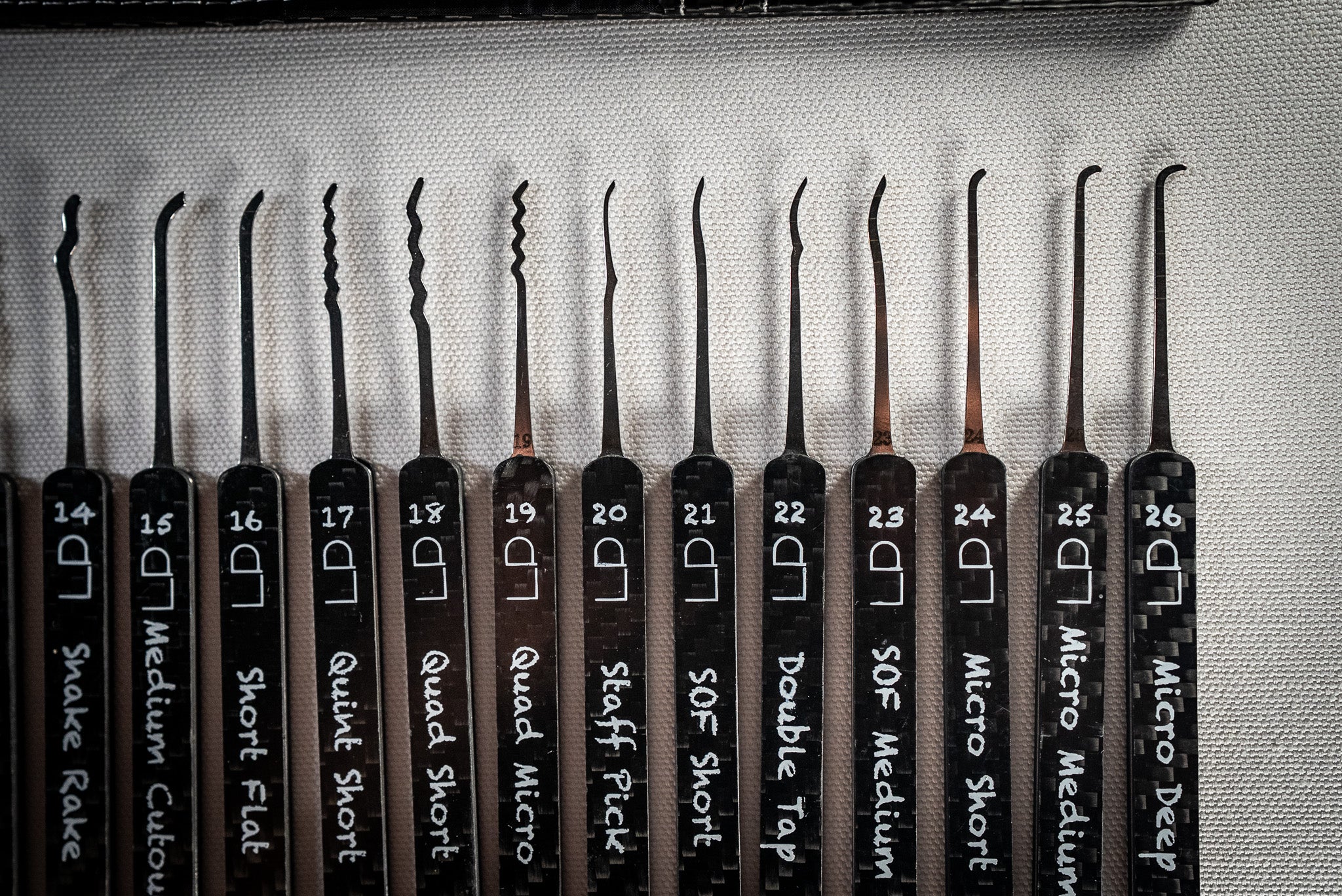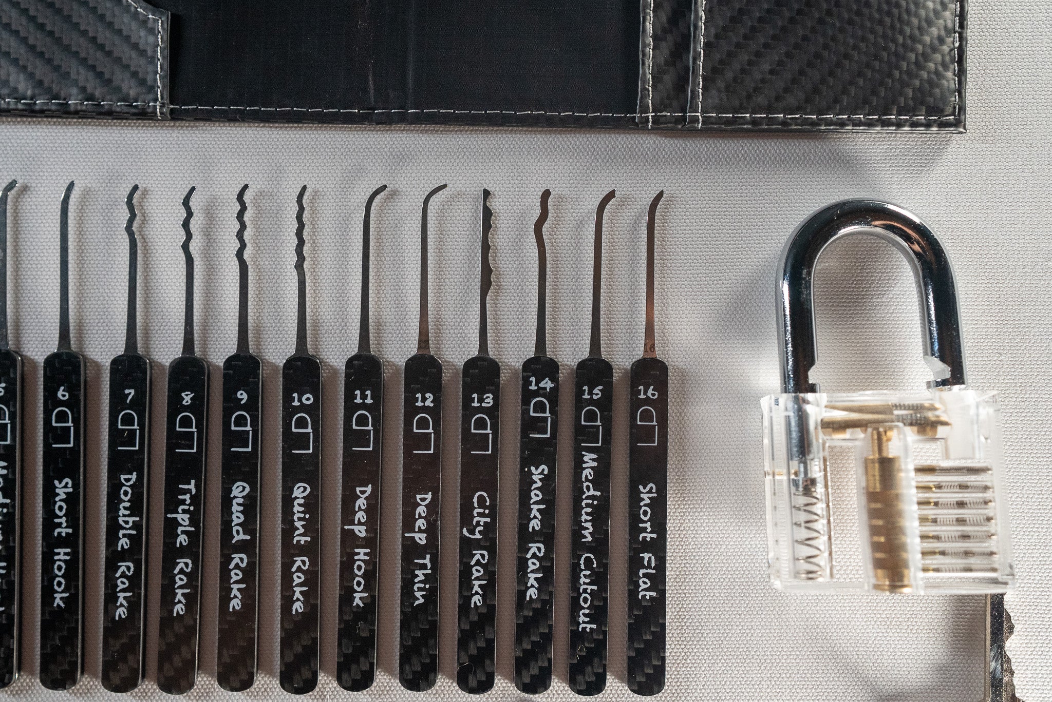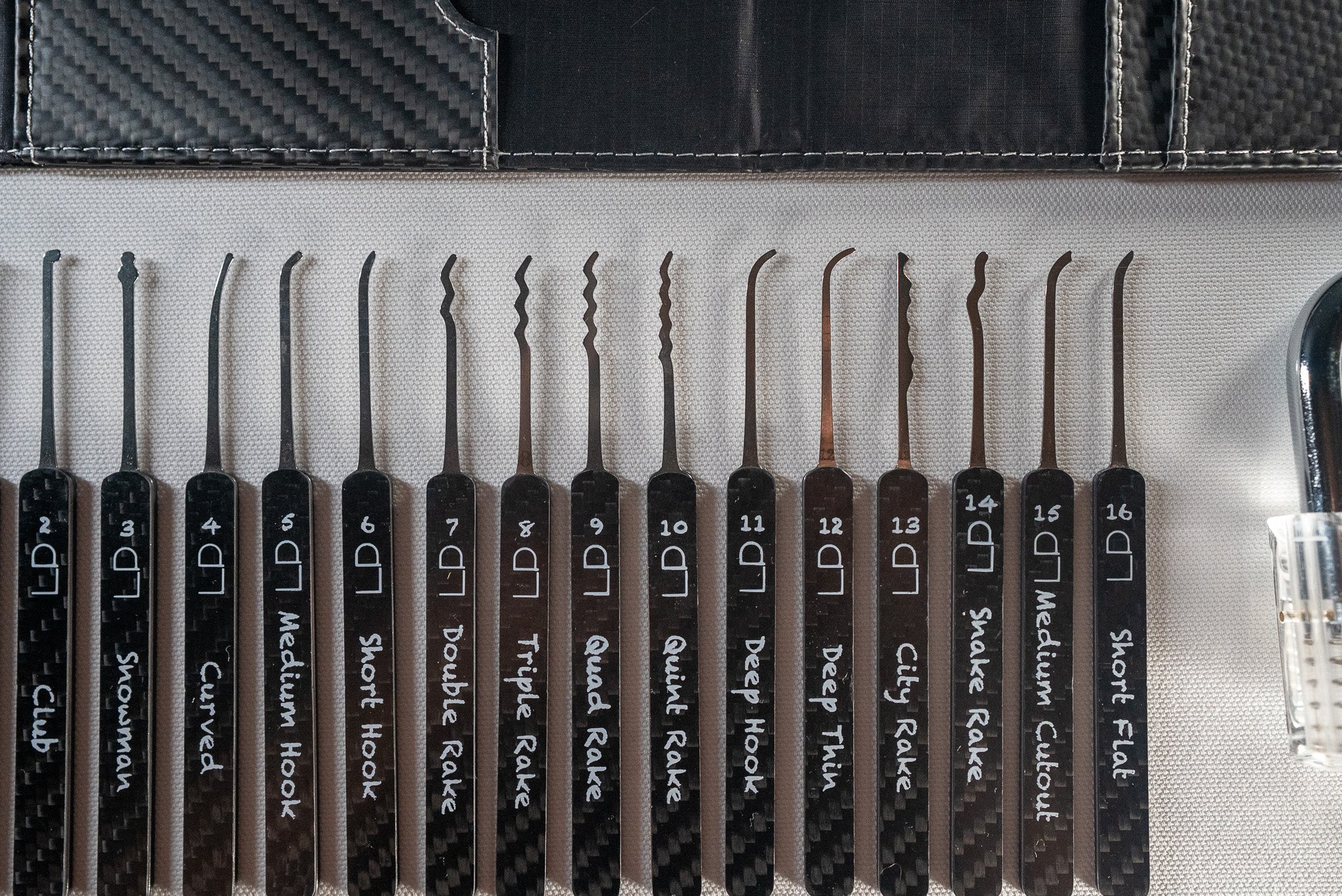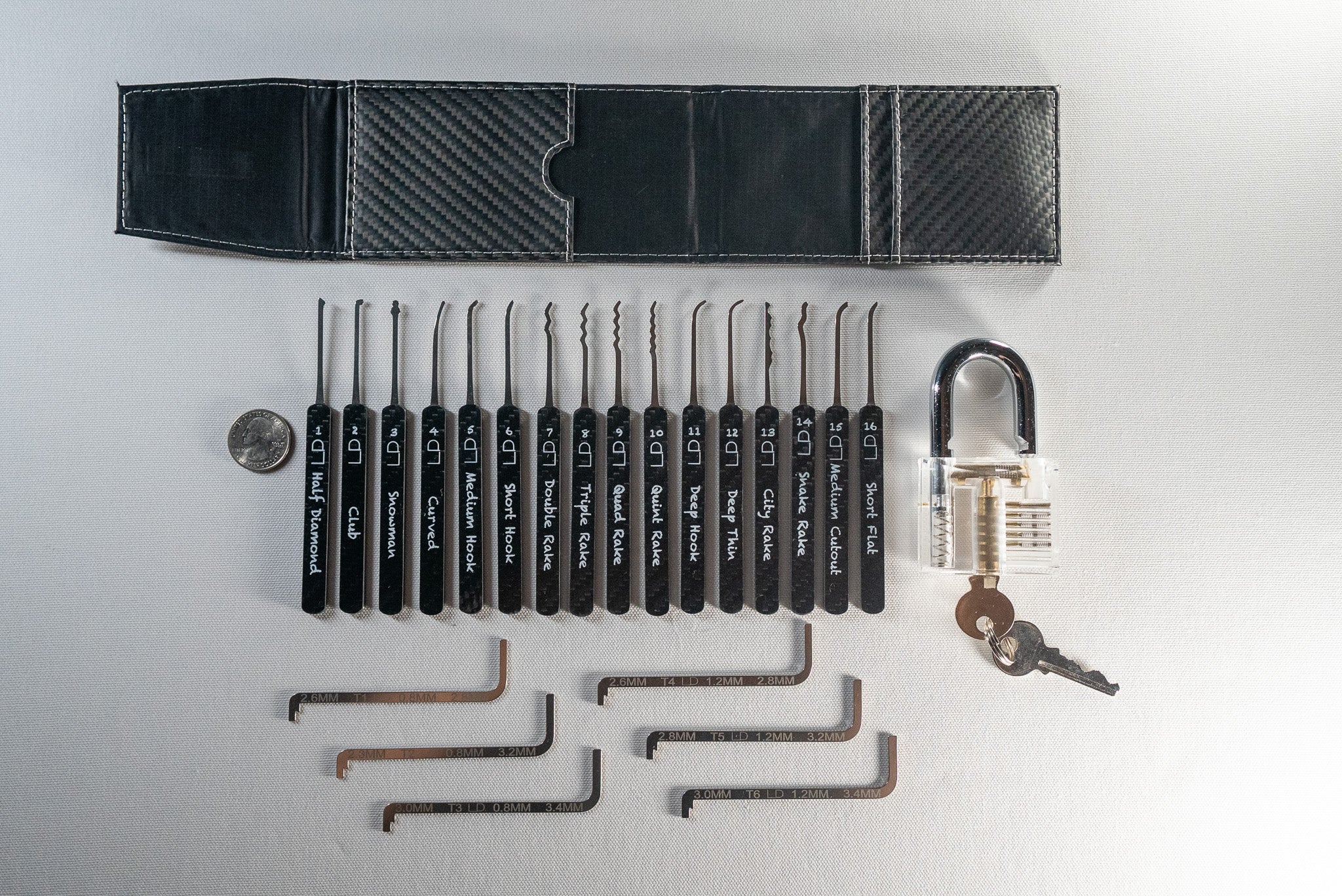This is our newly updated Carbon Fiber Special Gen 2 set with the updated case and elite series tension wrenches. Make sure to check the options to get insure the right purchase.