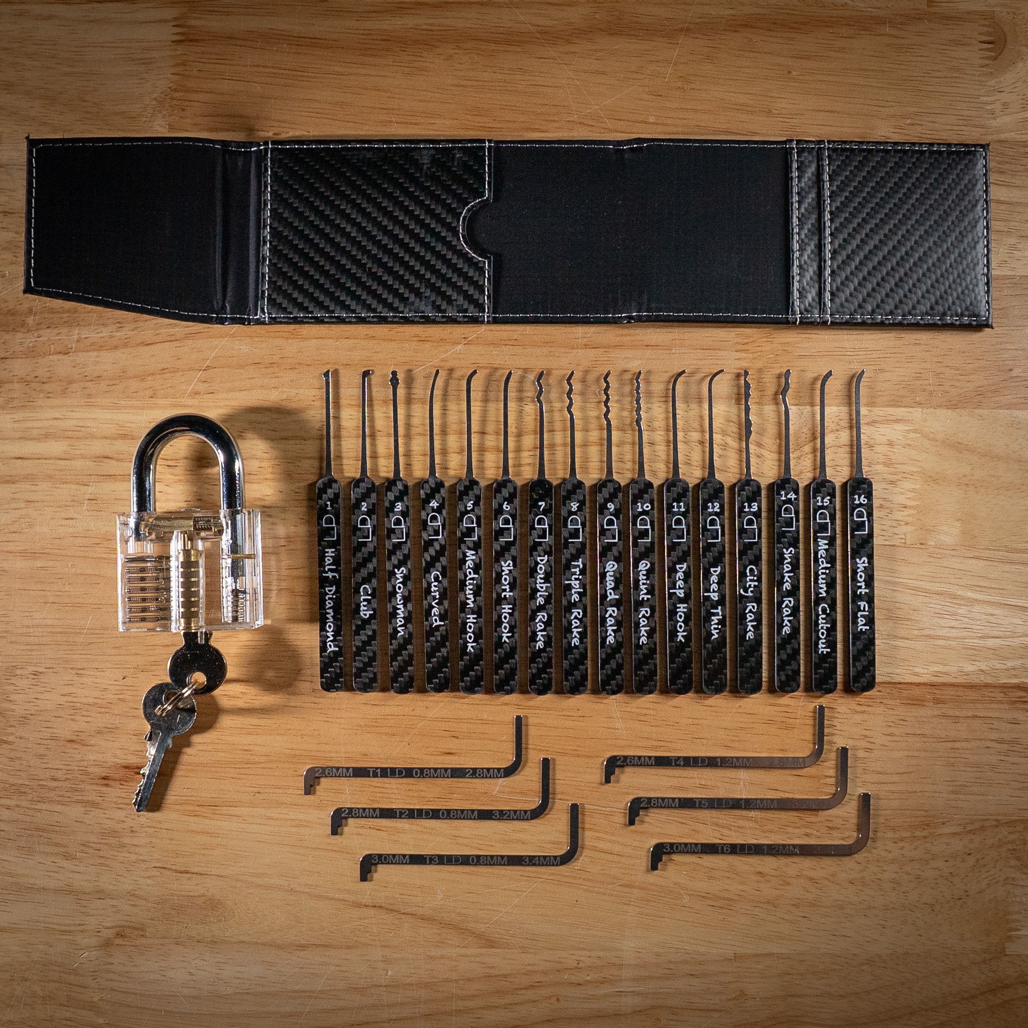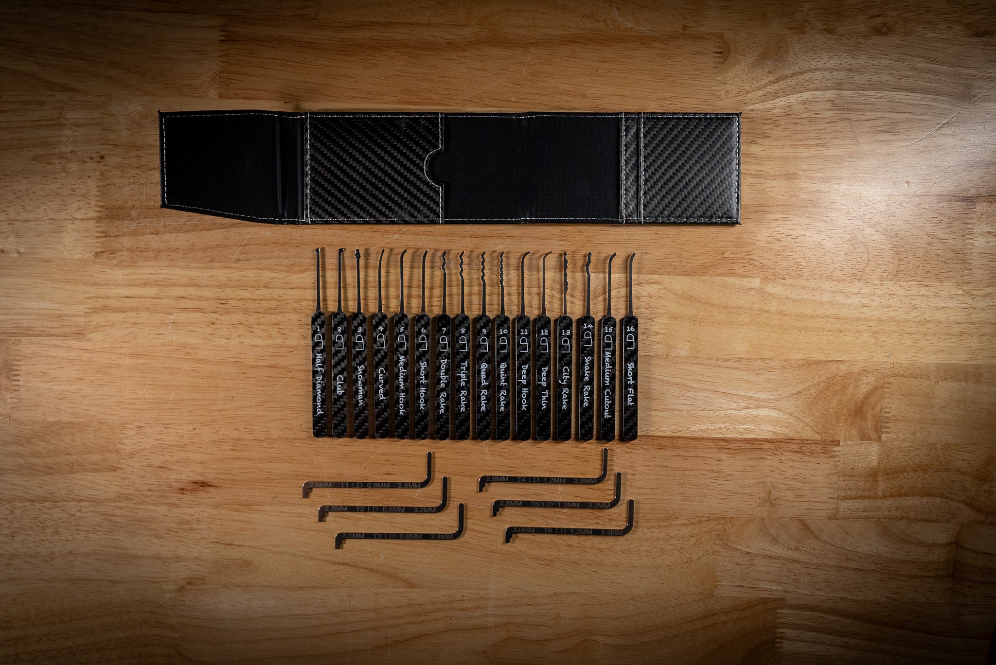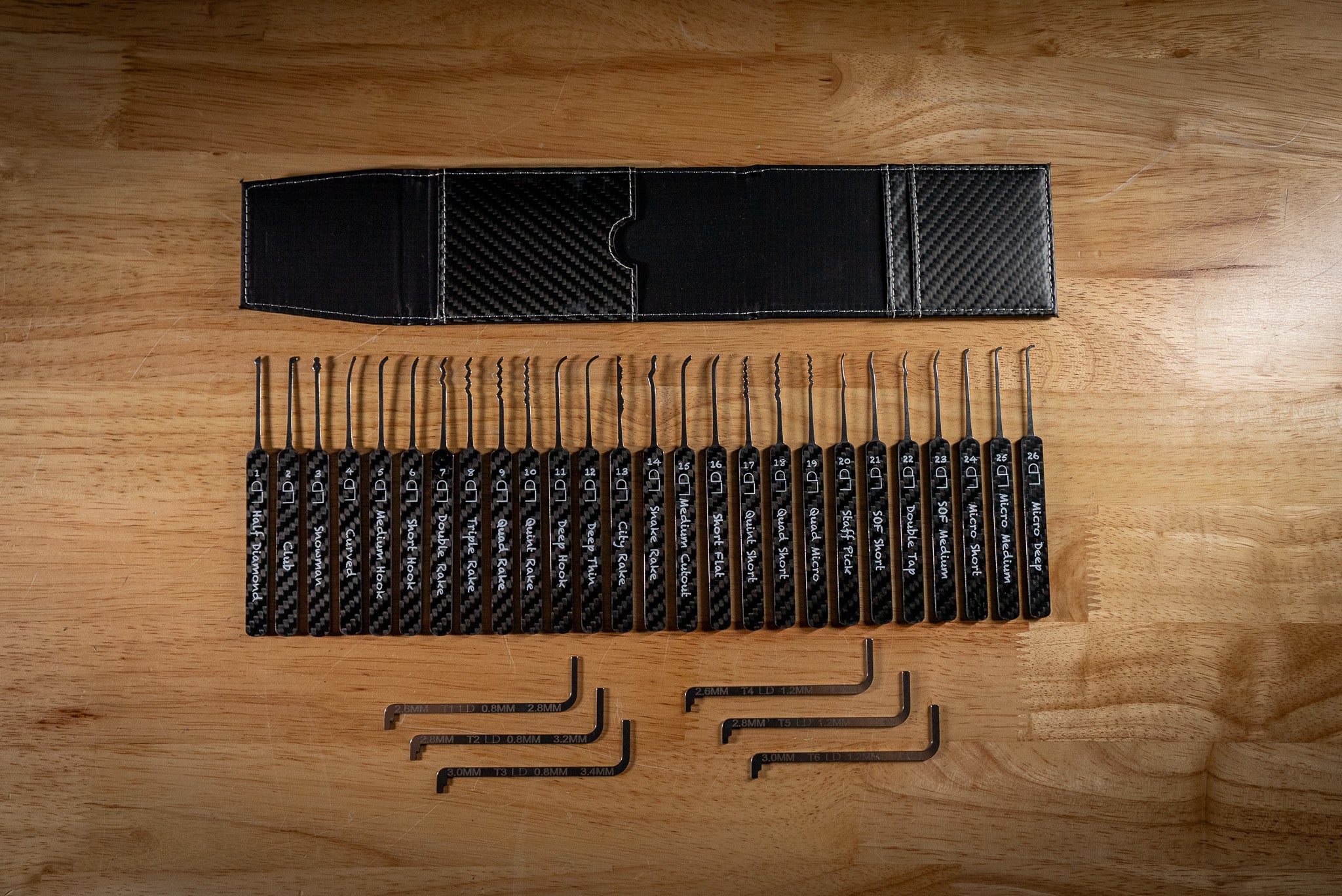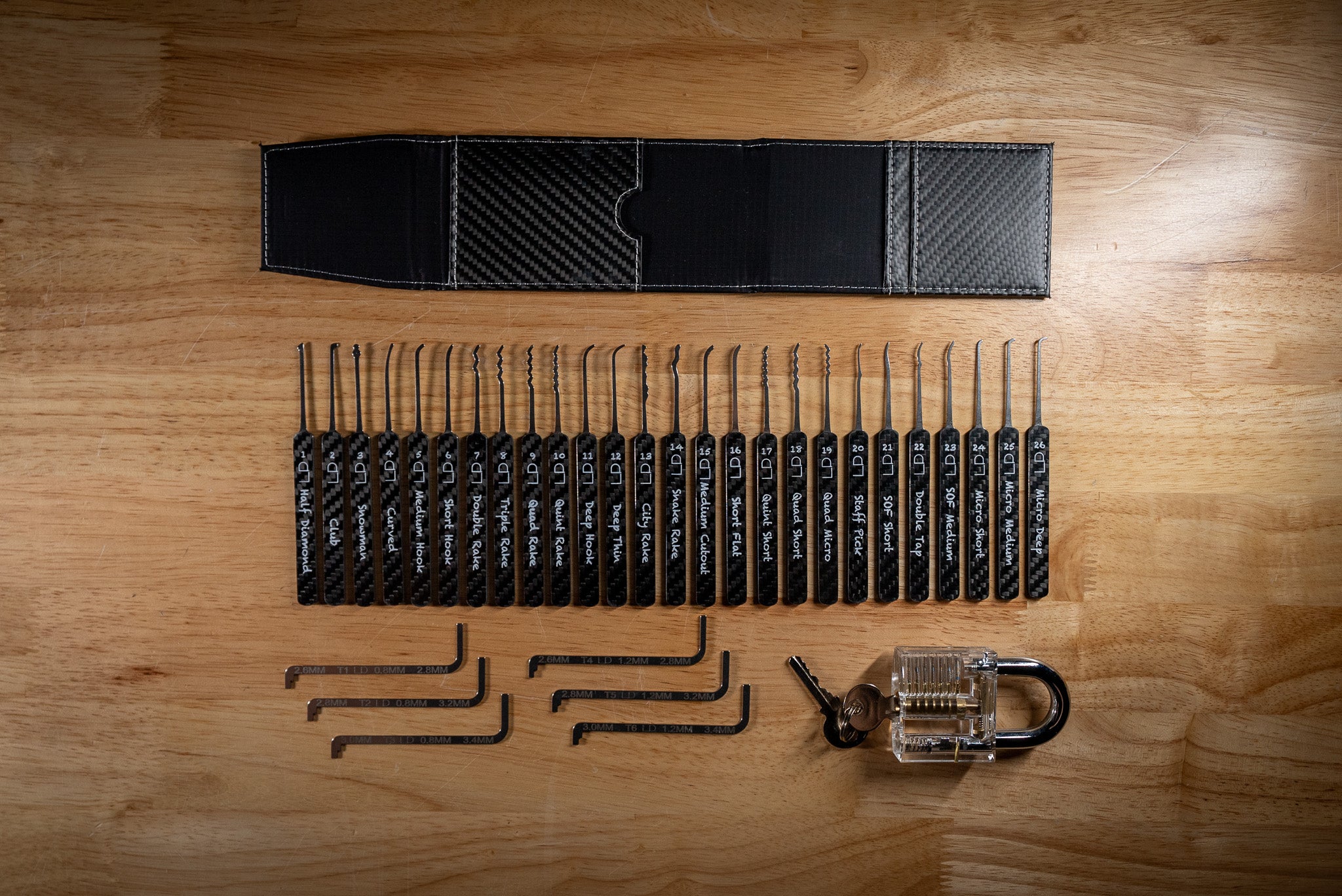 This is our newly updated Carbon Fiber Special Gen 2 set with the updated case and elite series tension wrenches. Make sure to check the options to get insure the right purchase.