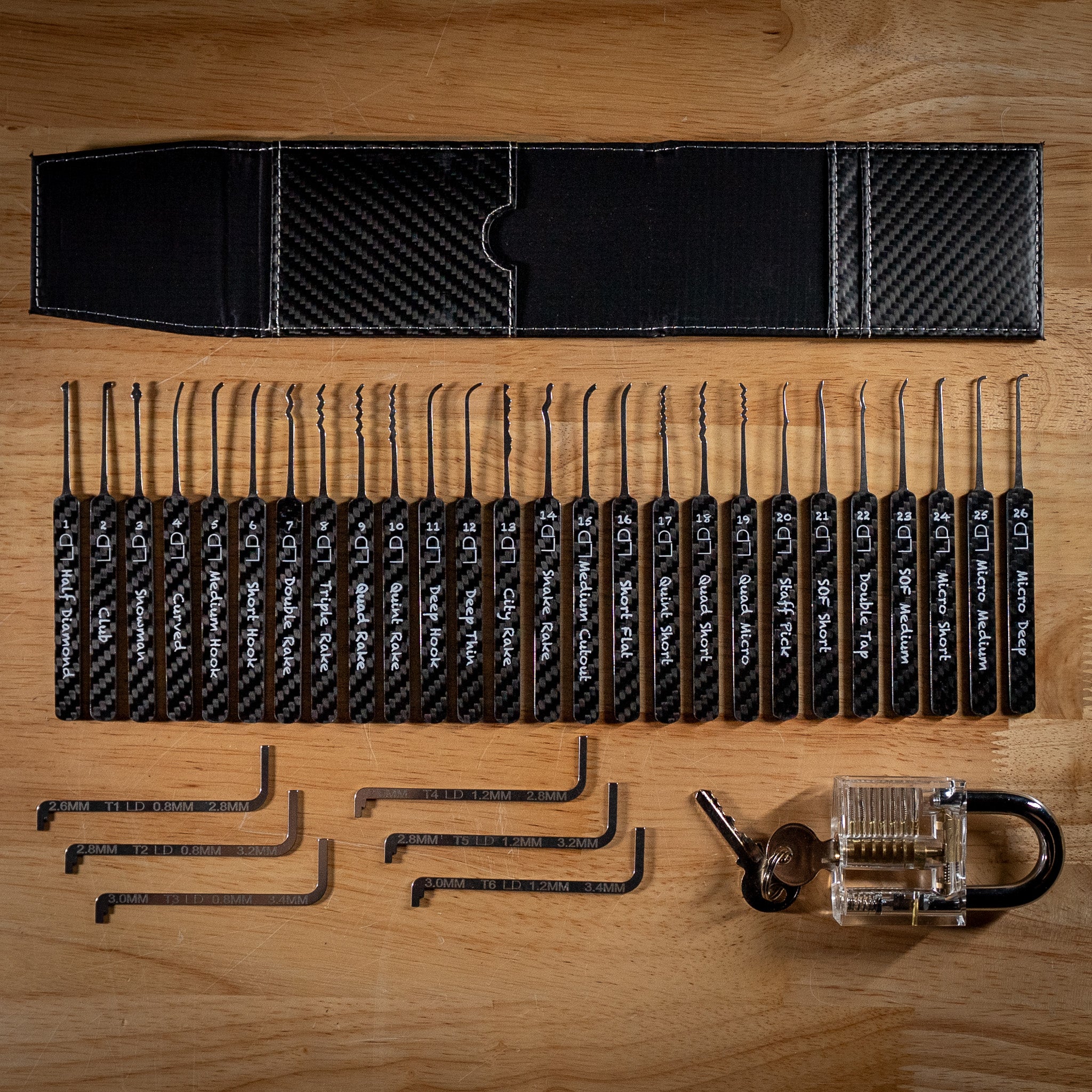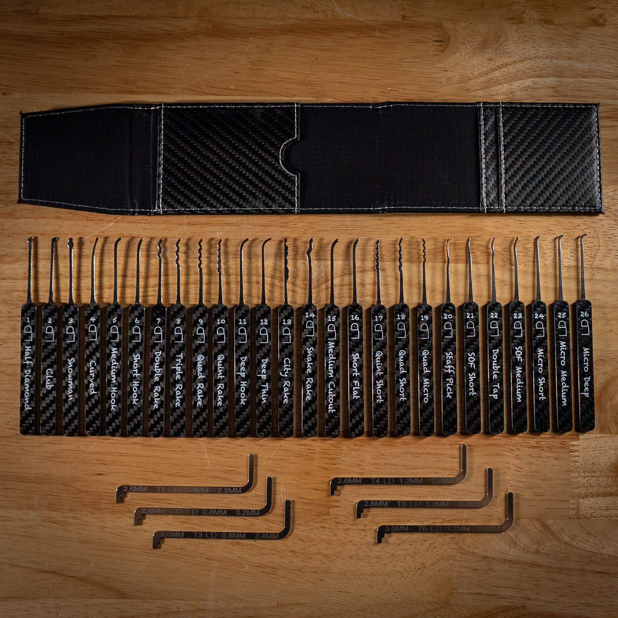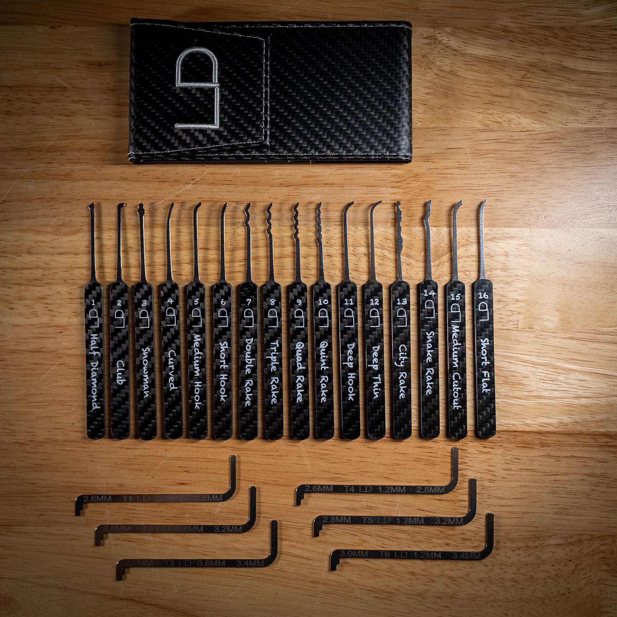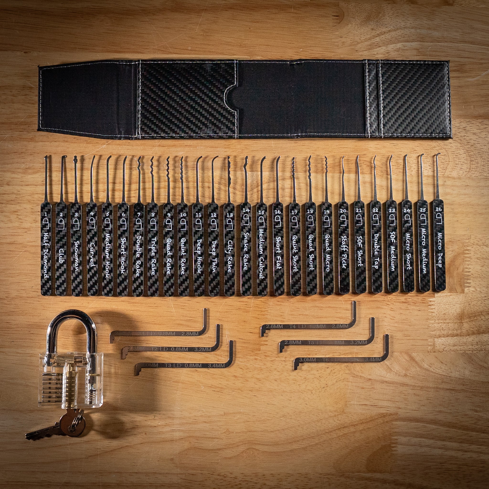 This is our newly updated Carbon Fiber Special Gen 2 set with the updated case and elite series tension wrenches. Make sure to check the options to get insure the right purchase.