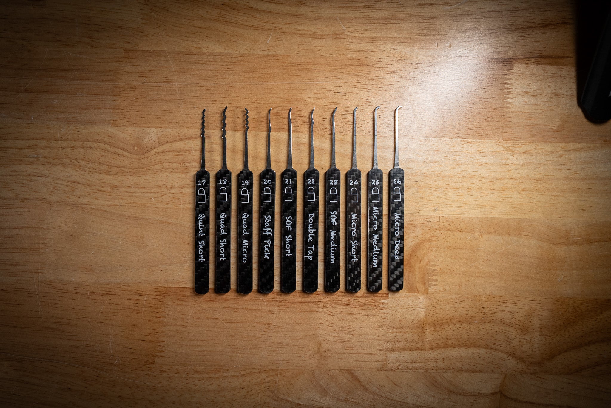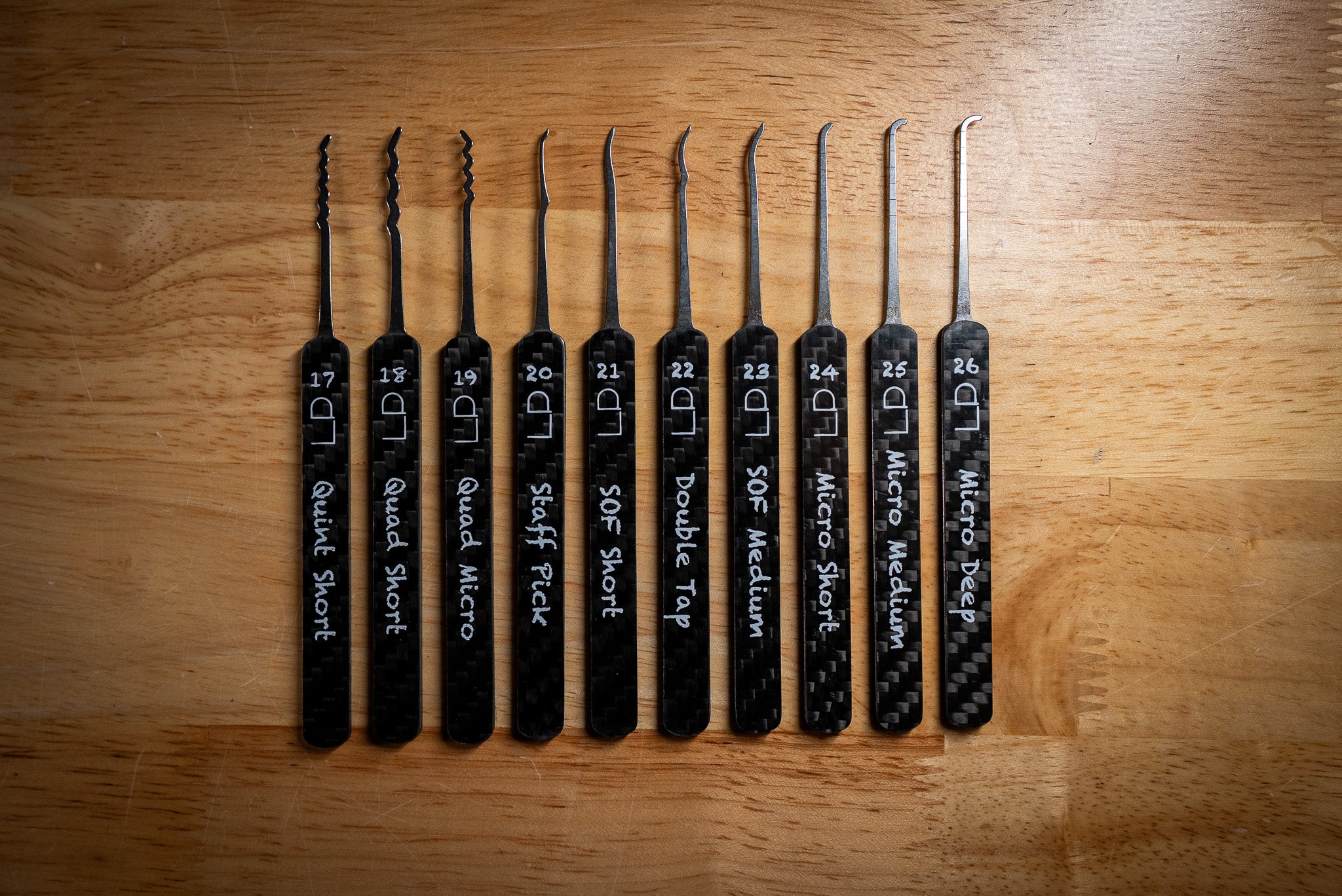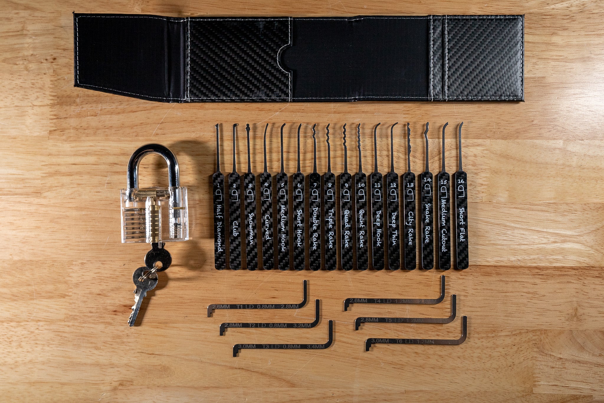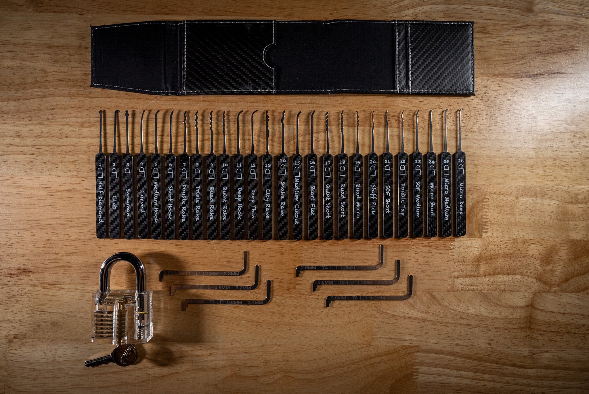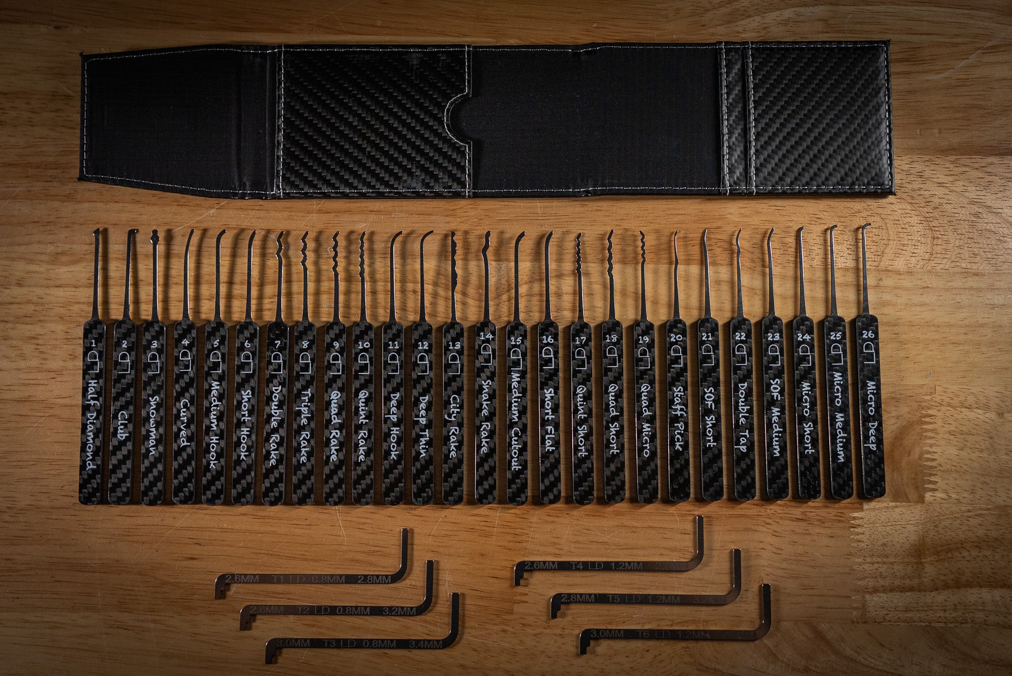 This is our newly updated Carbon Fiber Special Gen 2 set with the updated case and elite series tension wrenches. Make sure to check the options to get insure the right purchase.