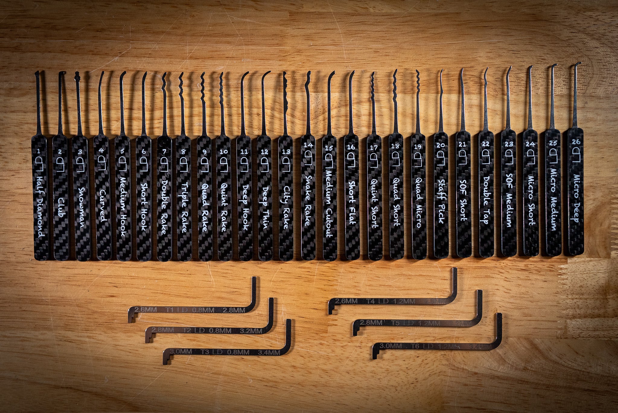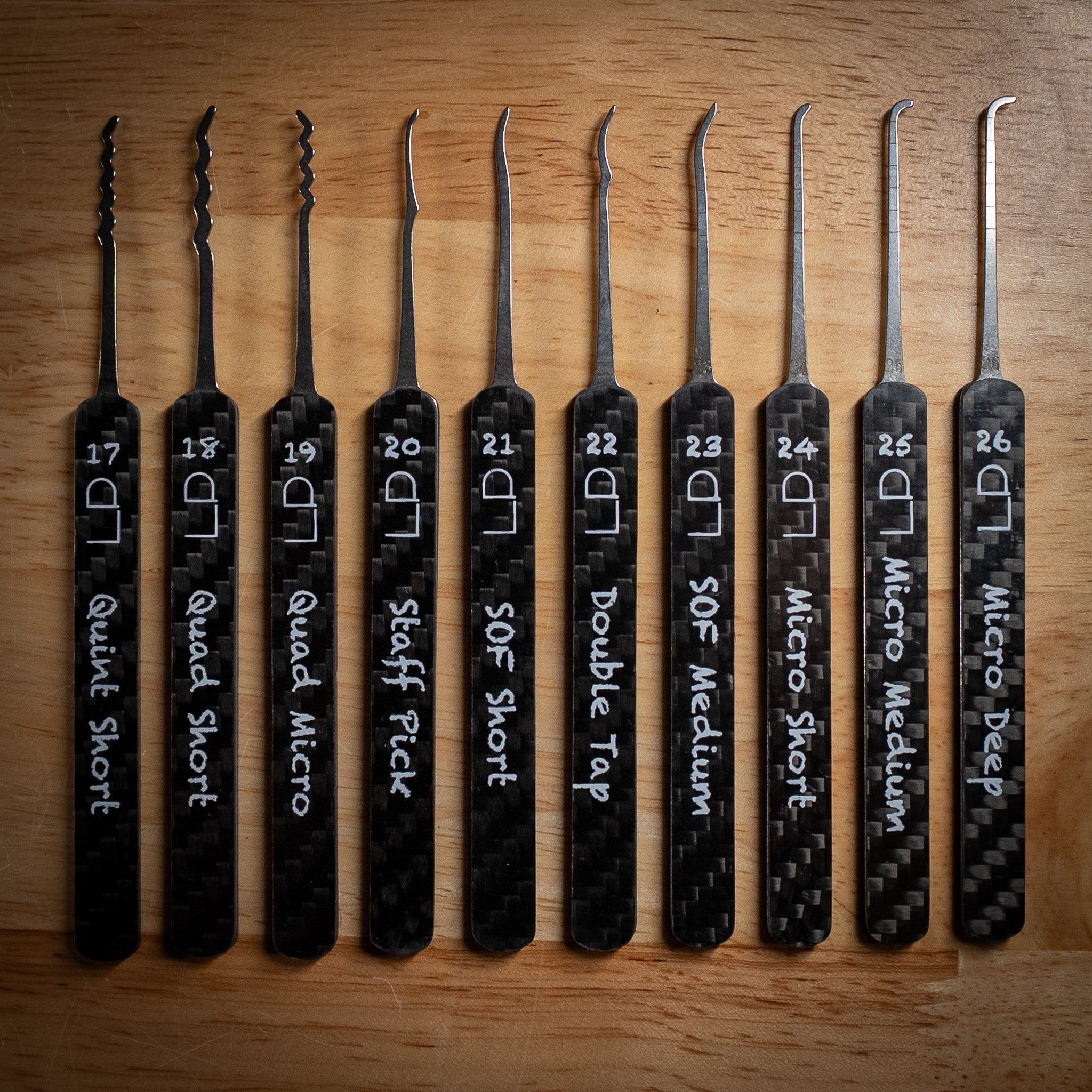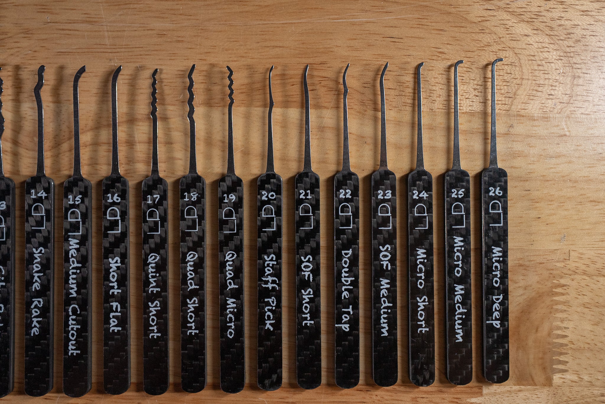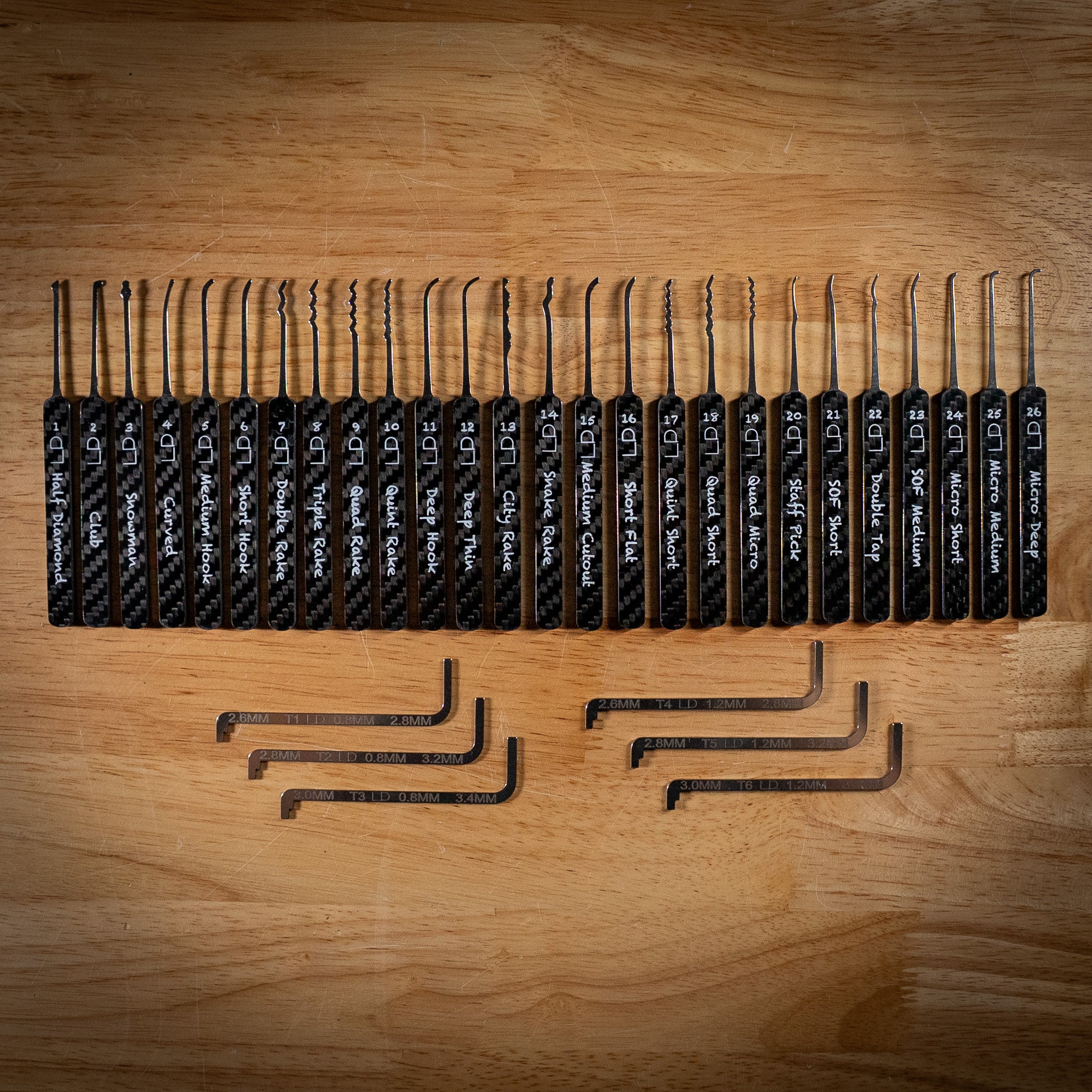 This is our newly updated Carbon Fiber Special Gen 2 set with the updated case and elite series tension wrenches. Make sure to check the options to get insure the right purchase.