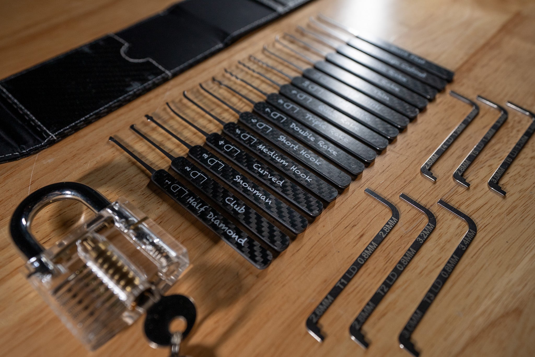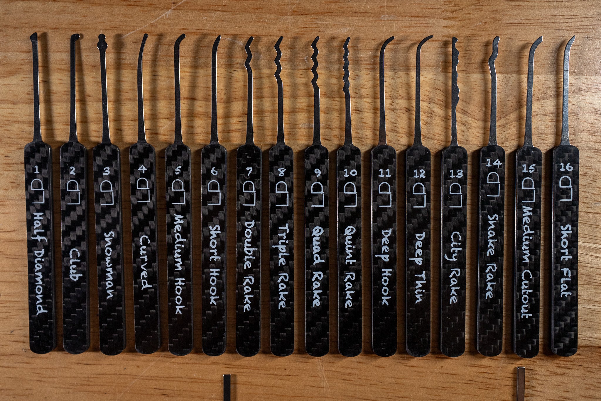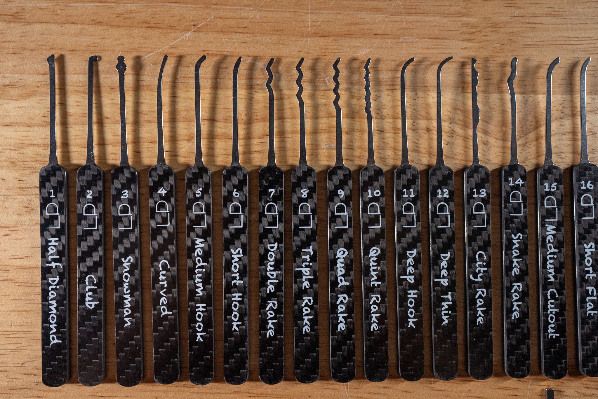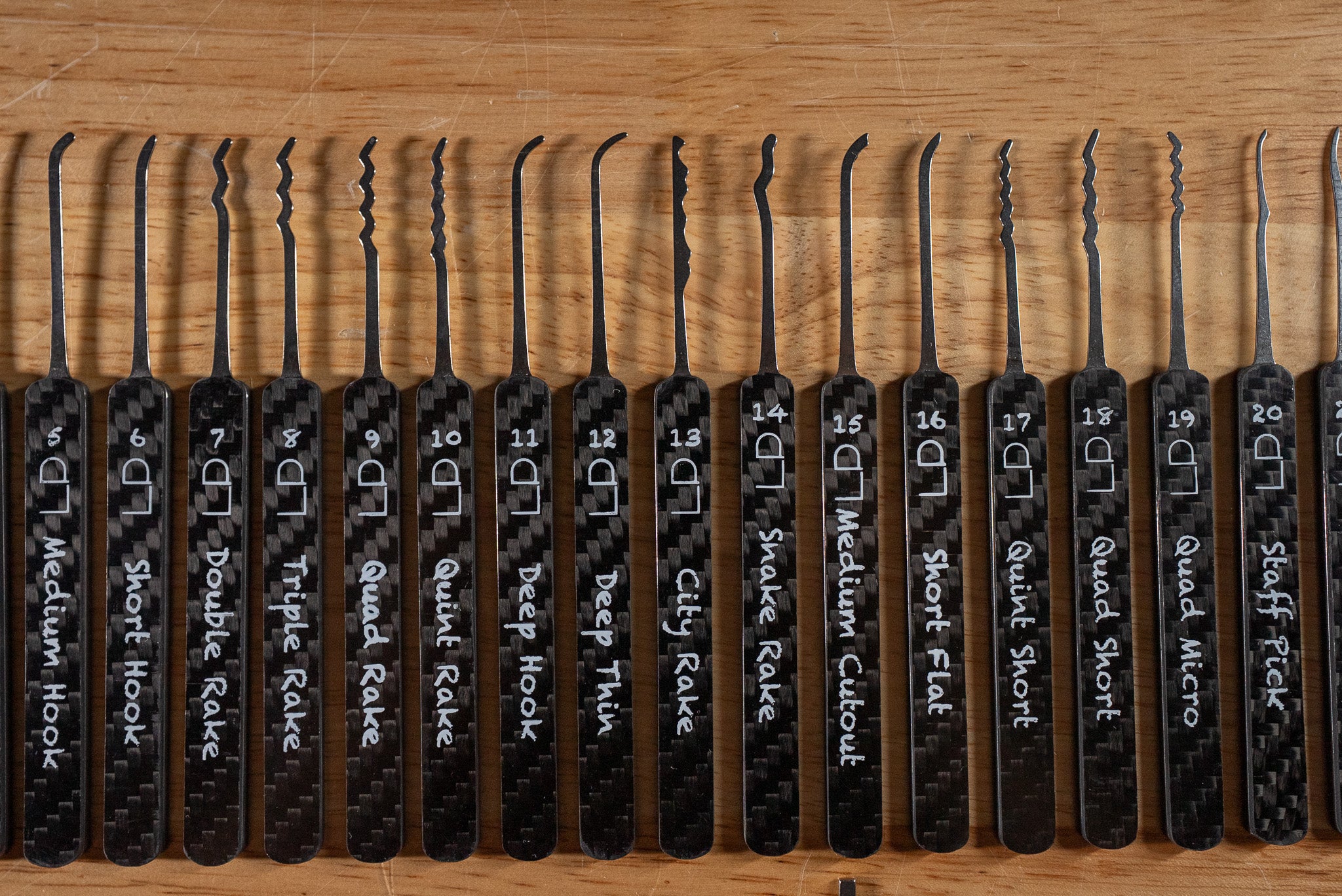 This is our newly updated Carbon Fiber Special Gen 2 set with the updated case and elite series tension wrenches. Make sure to check the options to get insure the right purchase.