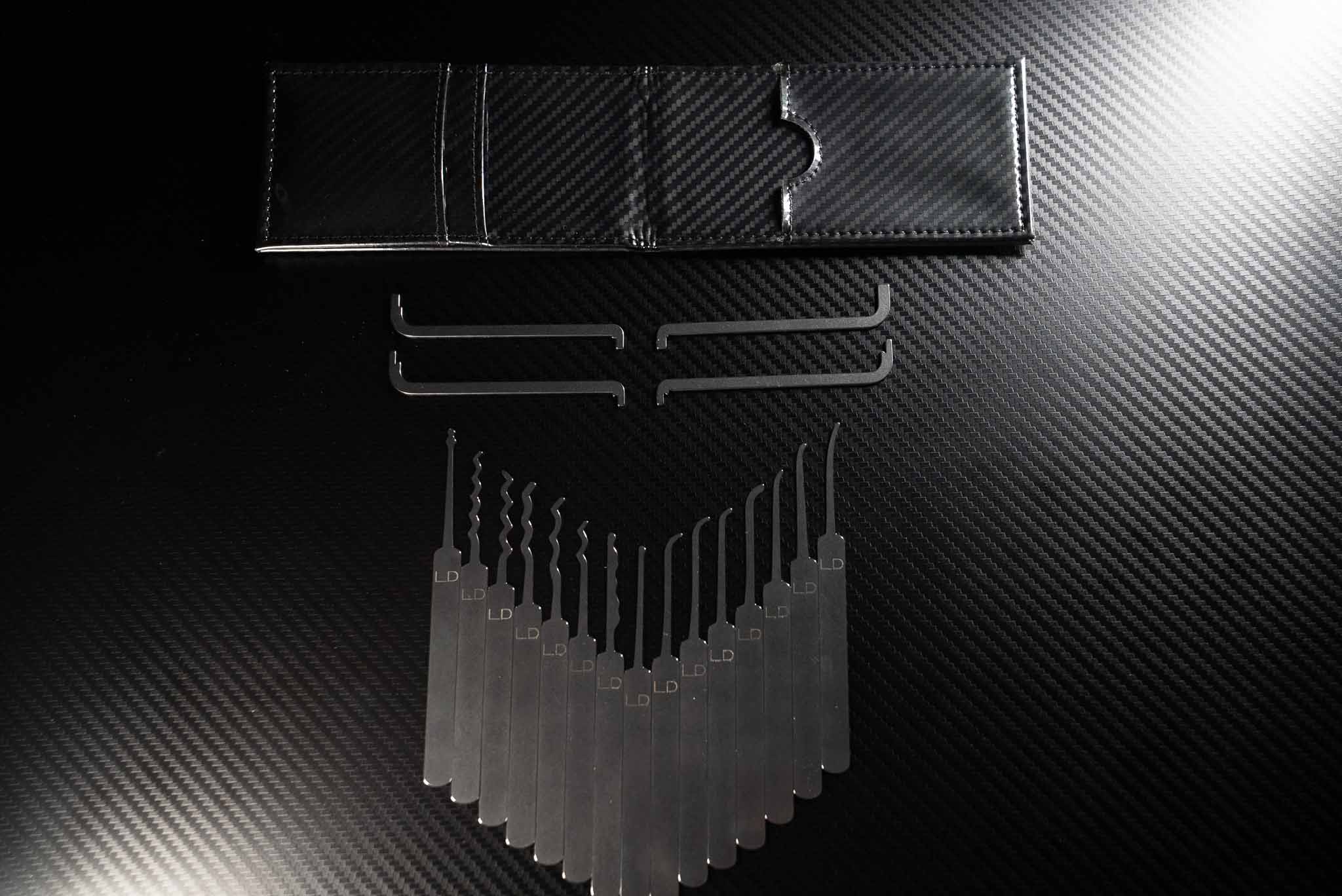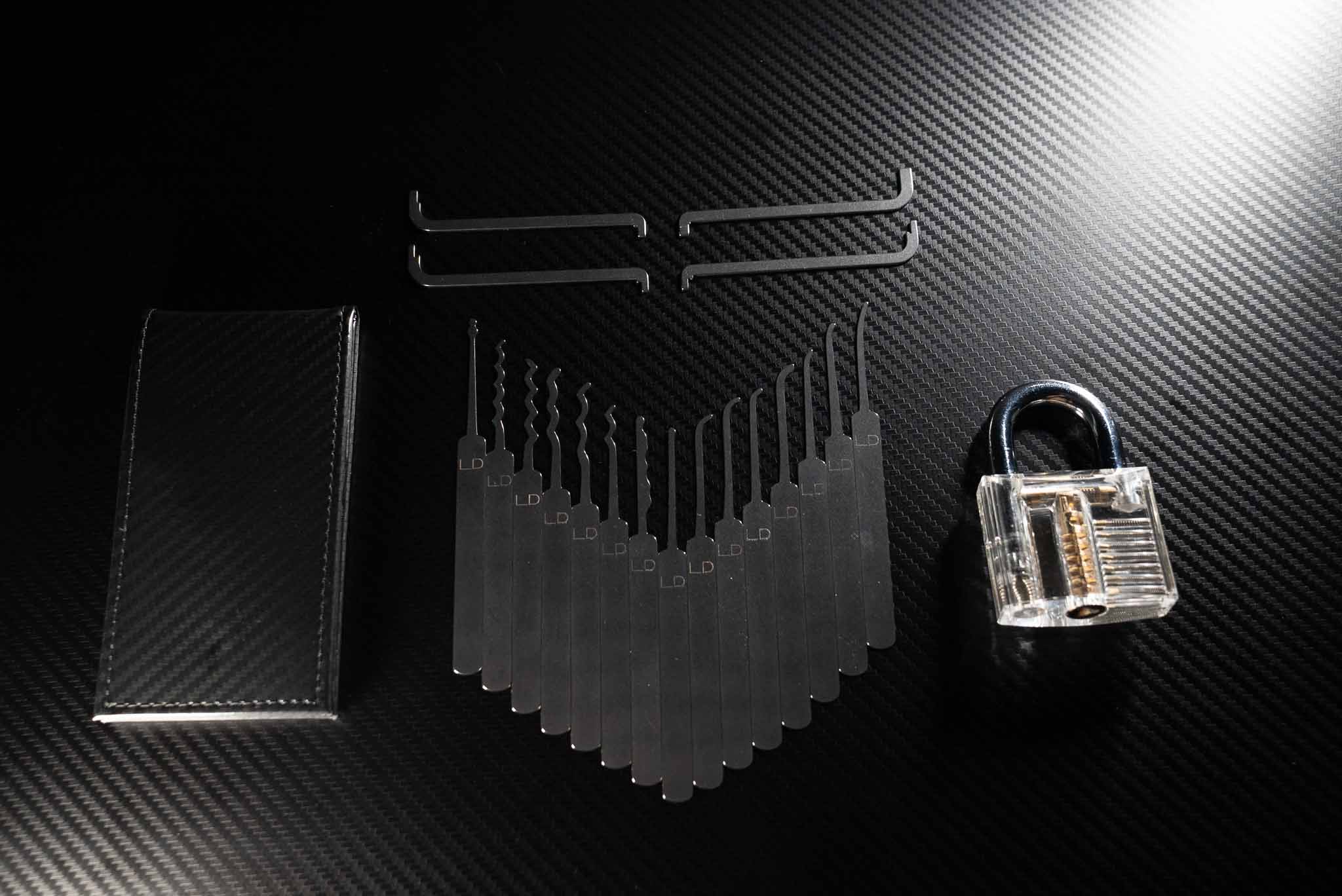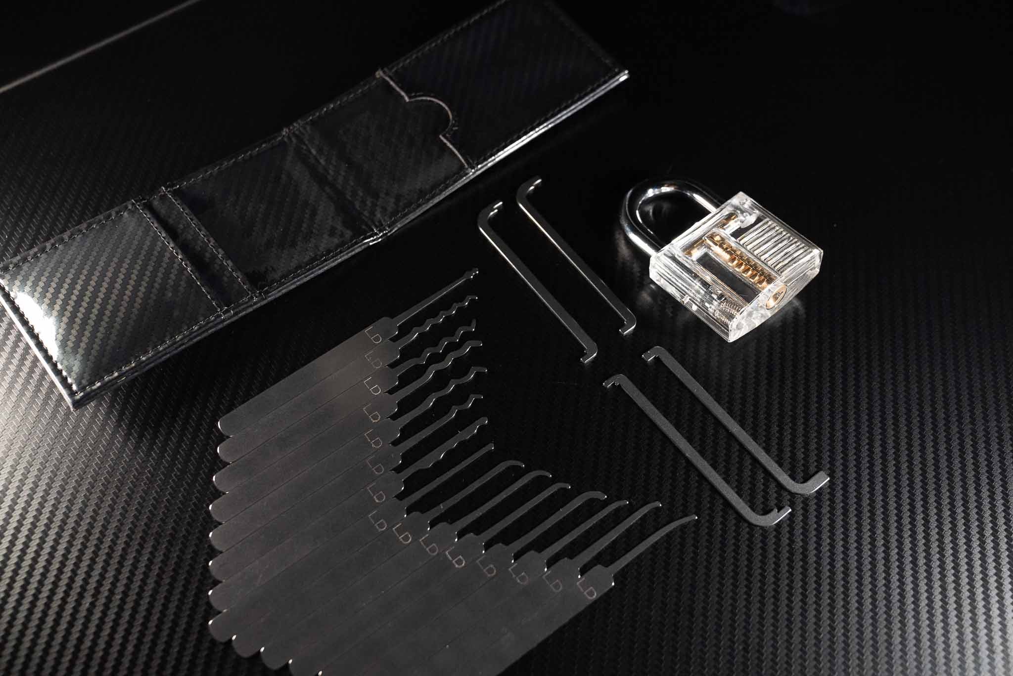 This set comes with 15 different lockpick profiles for learning different techniques. The set includes our Carbon Fiber carrying case, 4 tension wrenches, and an optional practice lock. Whether you're a hobbyist or a professional, our picks will not let you down. These durable picks make great gifts, lasting far longer than cheaper options and won't be outgrown in a month.