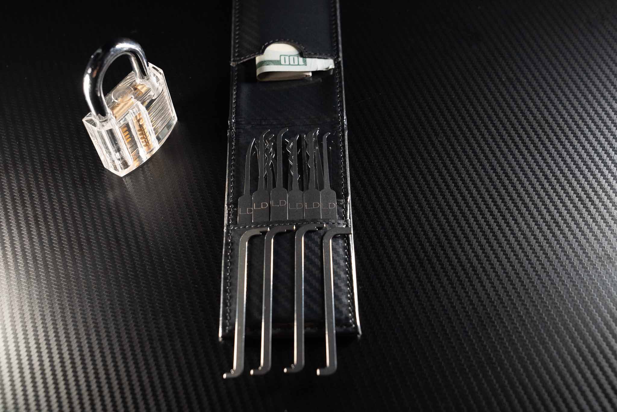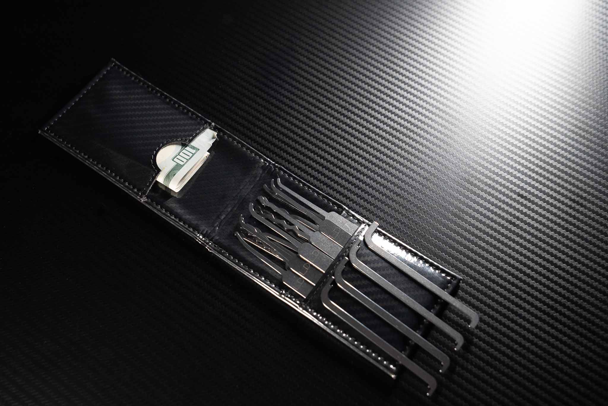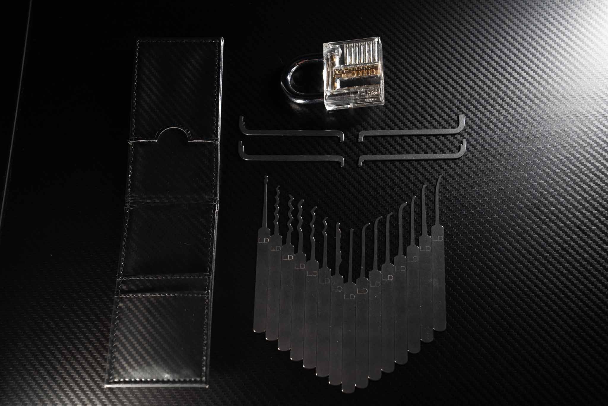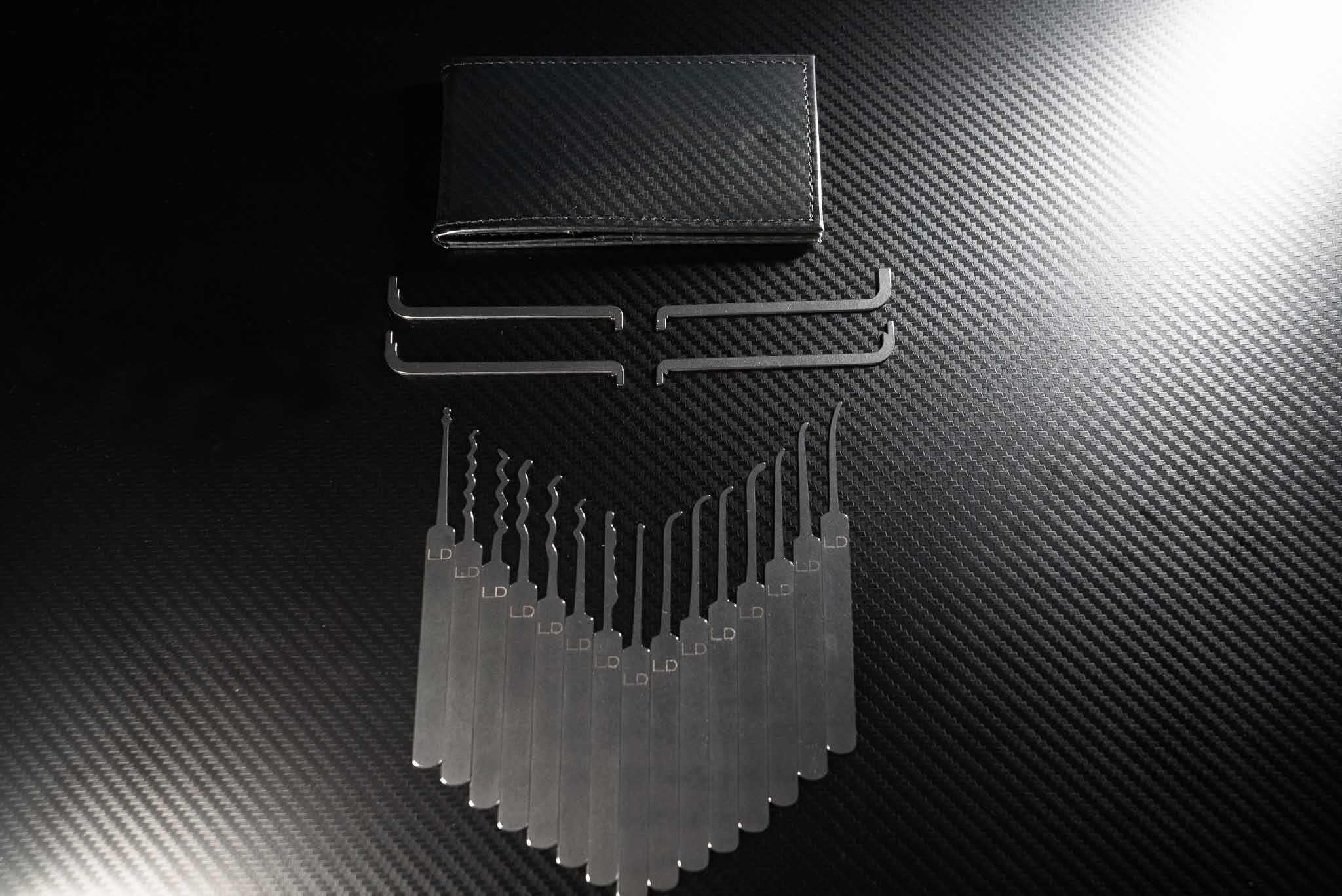 This set comes with 15 different lockpick profiles for learning different techniques. The set includes our Carbon Fiber carrying case, 4 tension wrenches, and an optional practice lock. Whether you're a hobbyist or a professional, our picks will not let you down. These durable picks make great gifts, lasting far longer than cheaper options and won't be outgrown in a month.