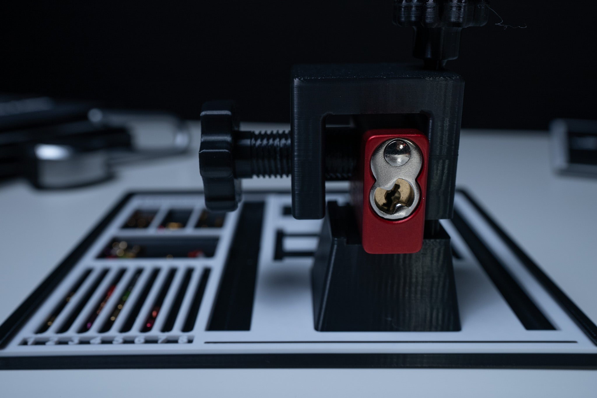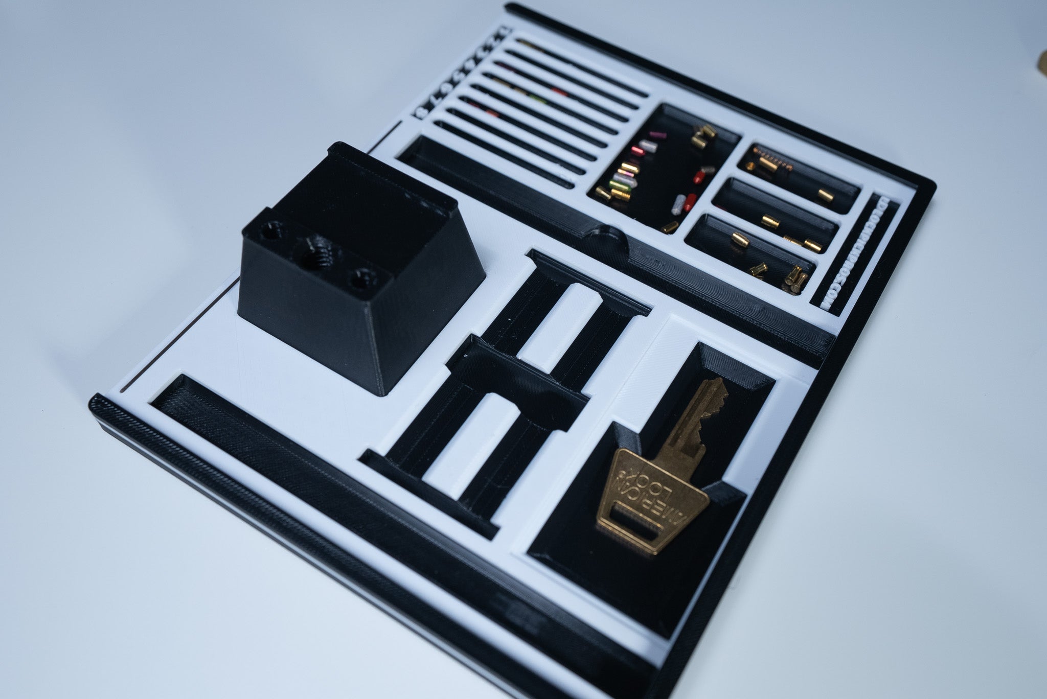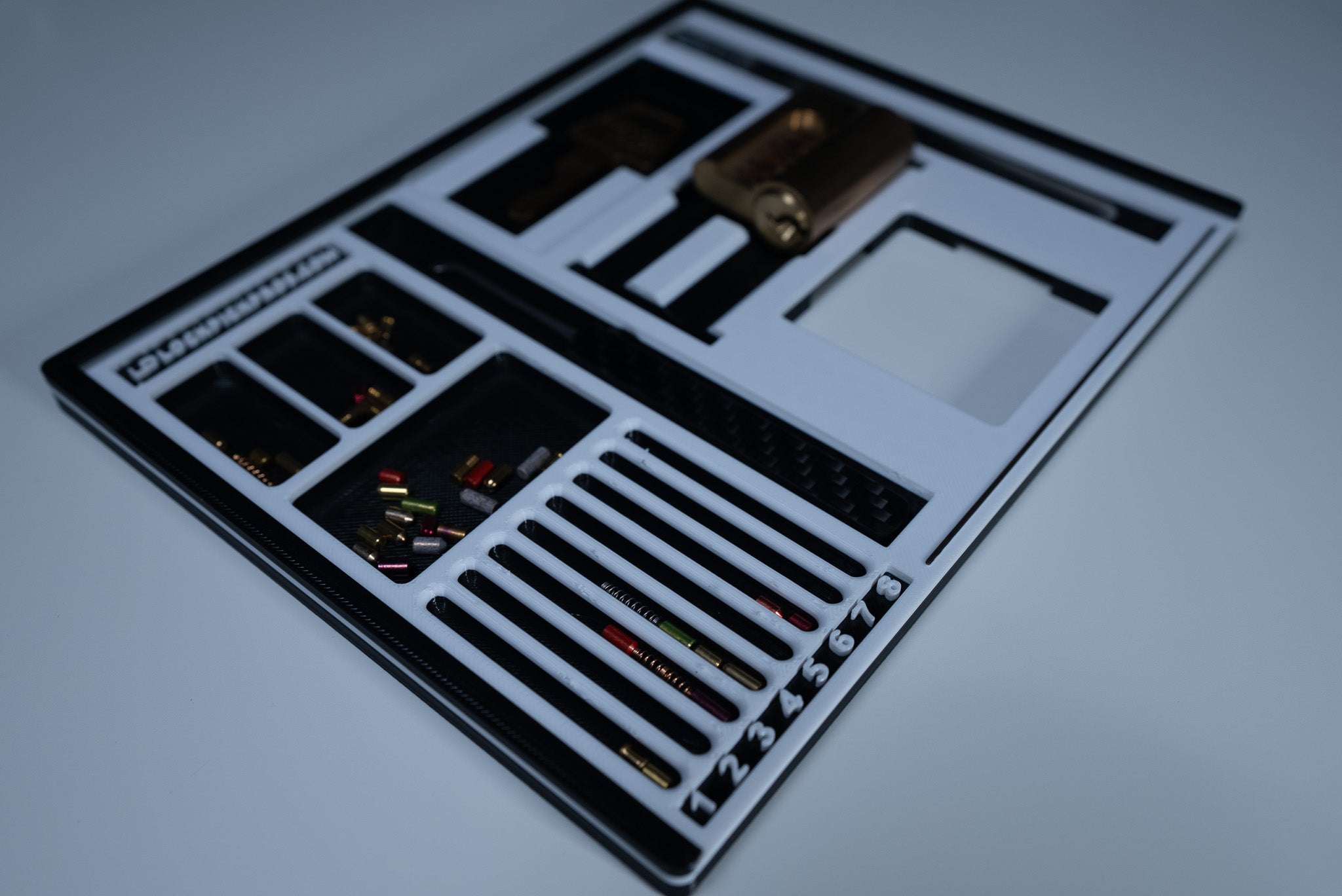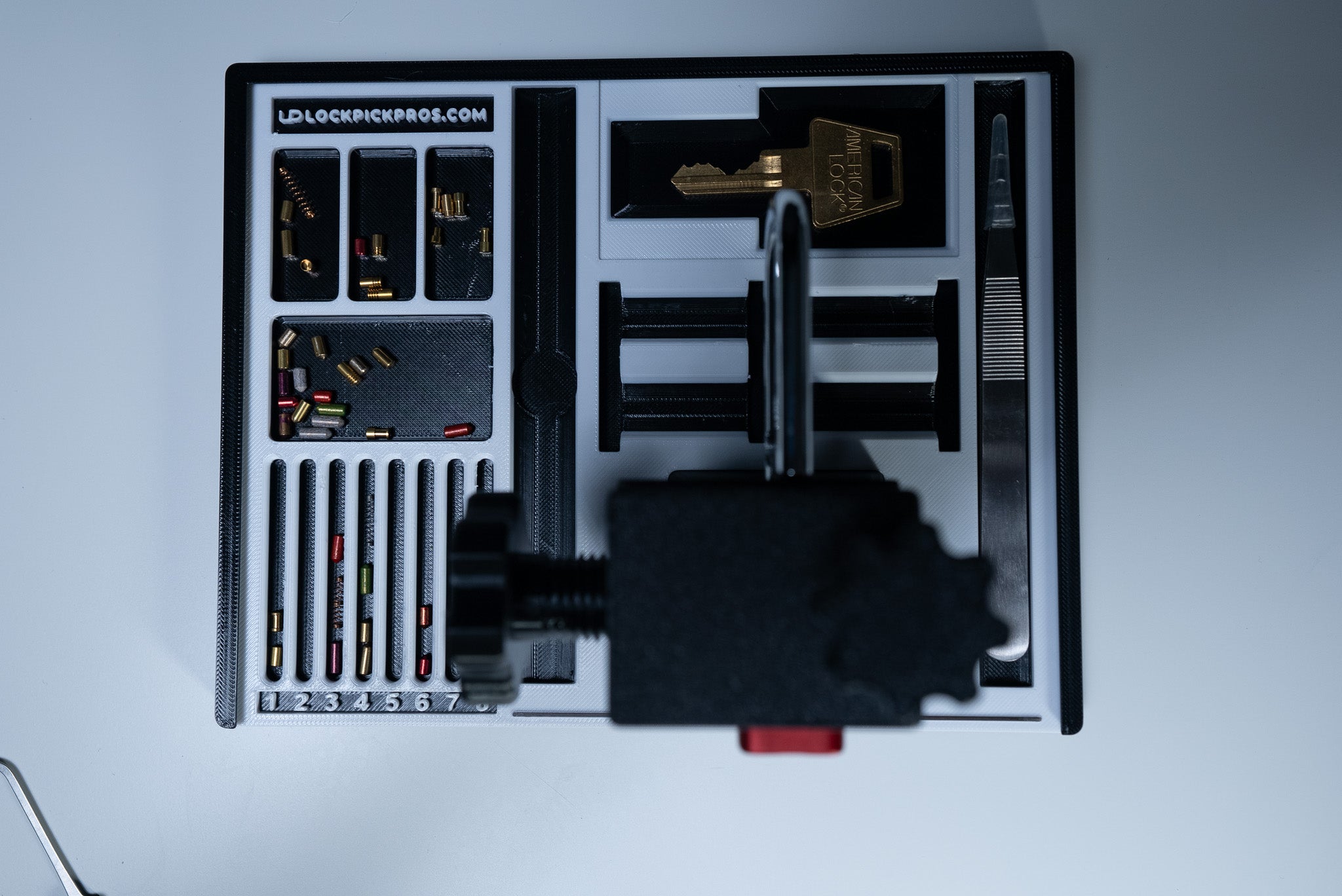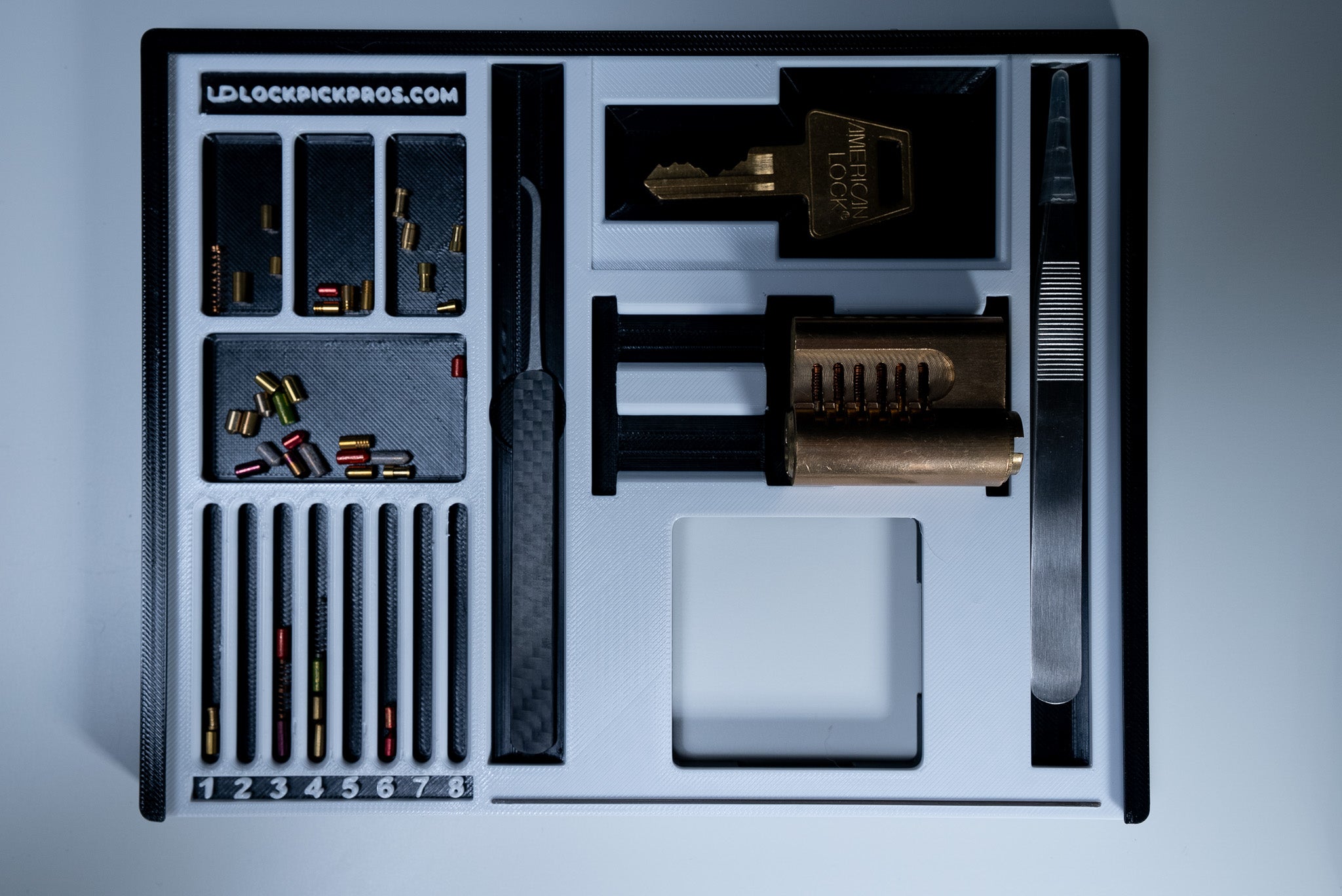 If you are a locksmith or a hobbyist, our pinning trays are designed for the ultimate comfort in mobile pinning. For travel or for keeping at your desk, you'll be able to easily organize your lock picking sessions. Buy more than one if you enjoy working on multiple locks simultaneously. Our signature pinning tray designed with individual sections to hold the following: