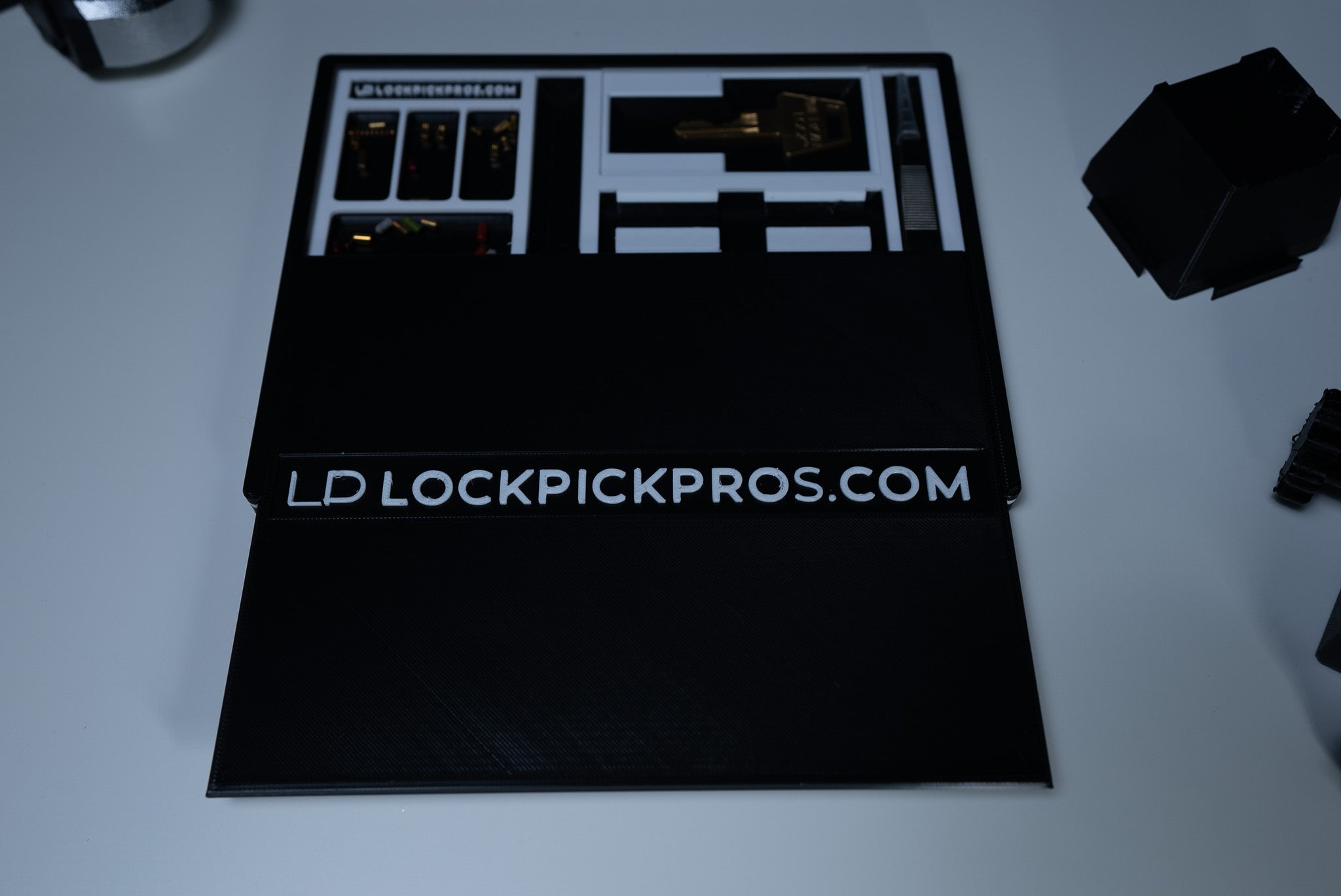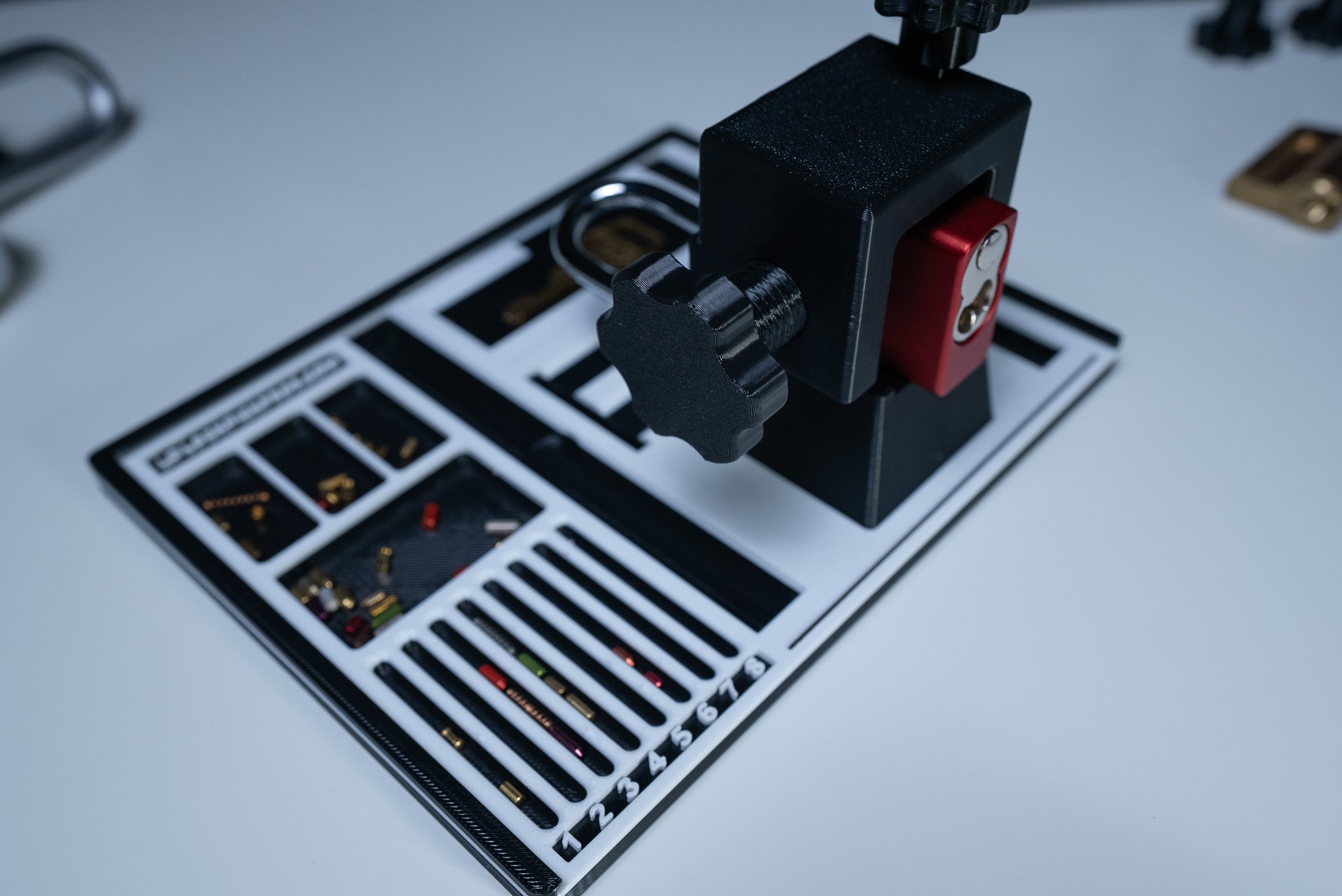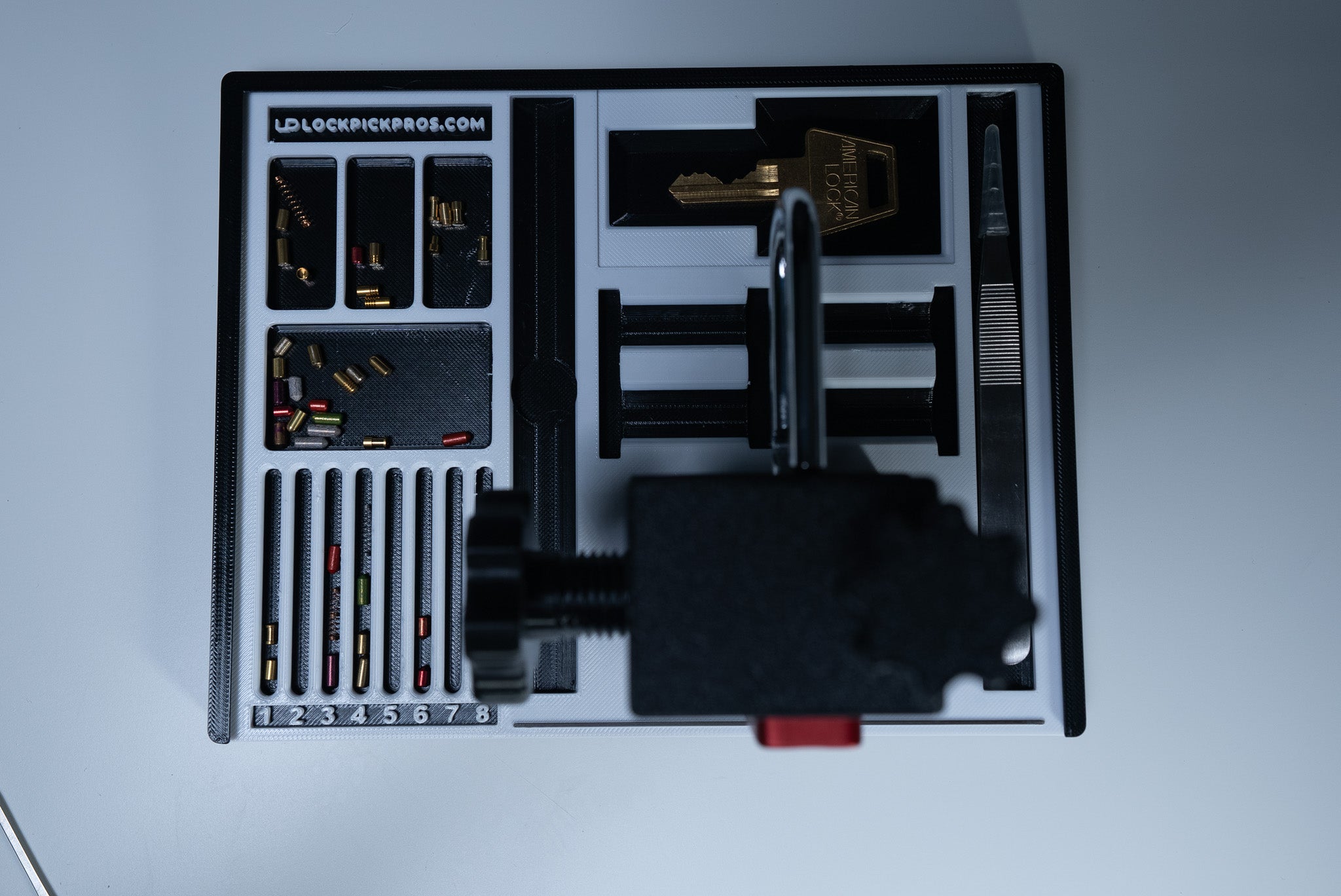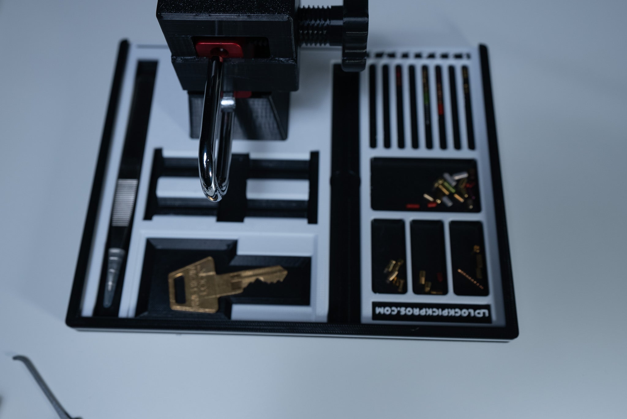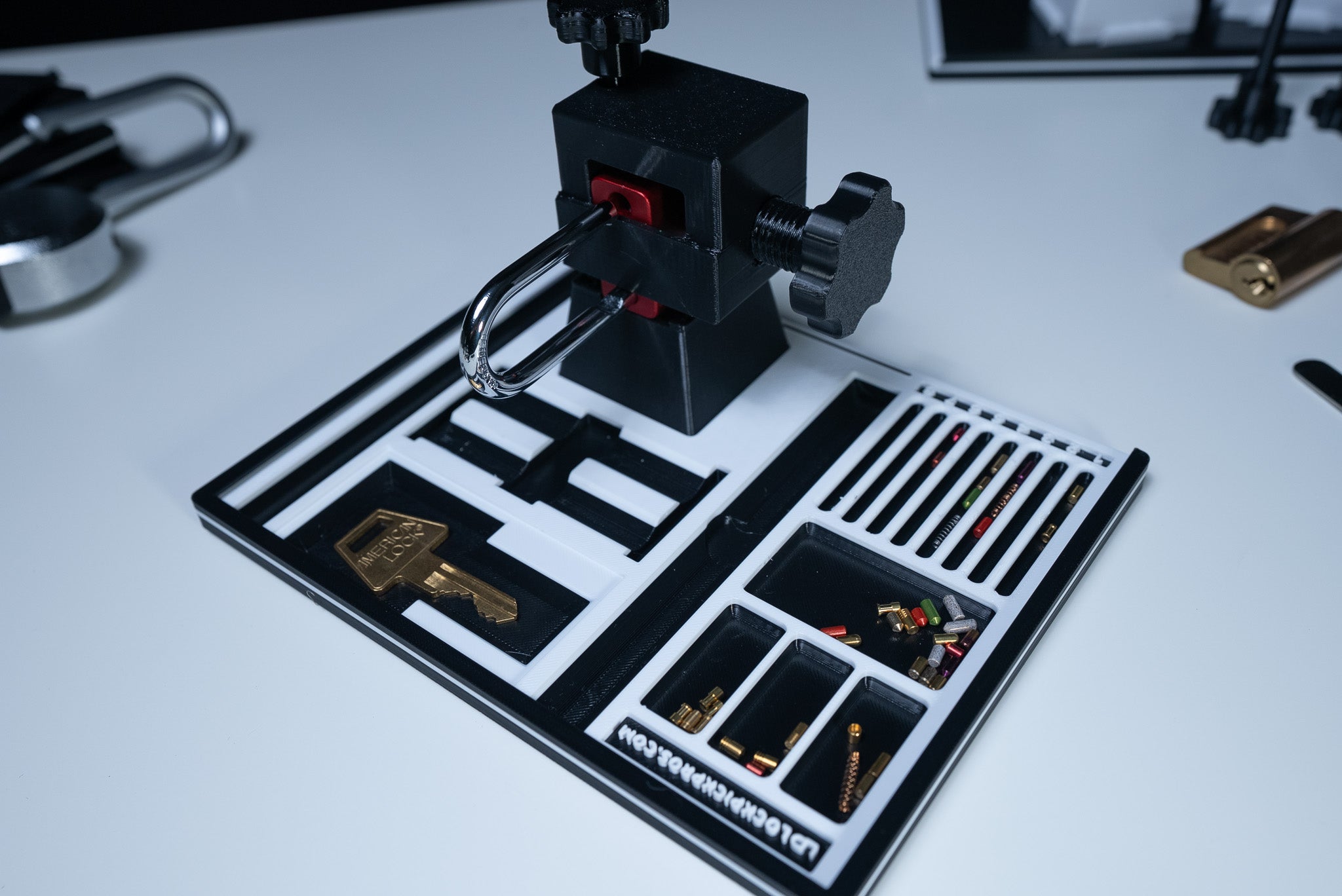 *Special Note: For those who purchase the lock mount - if you plan on using it to pick your lock, we recommend using white Easy Remove 3m wall mounting tape to secure the tray to your desk.
